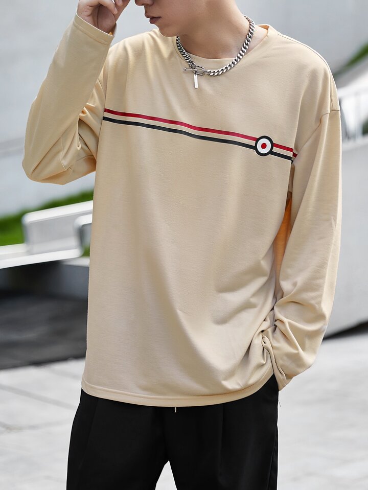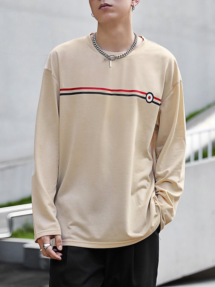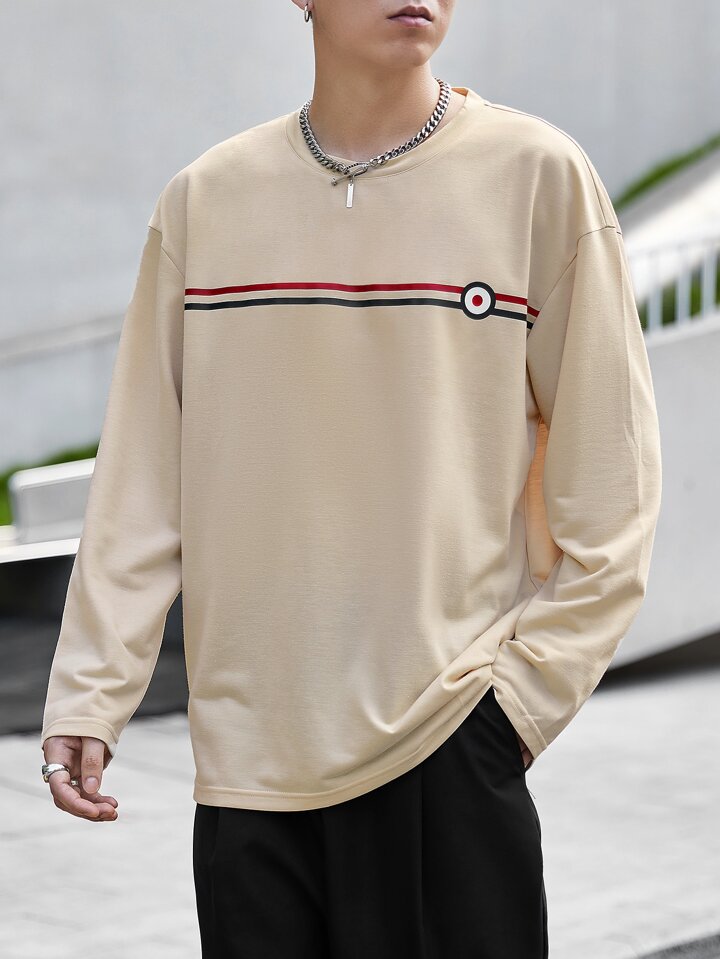 Hombres Camiseta de hombros caídos con cinta de rayas
