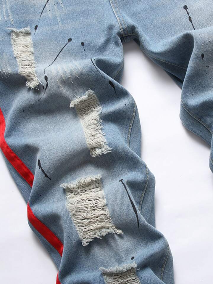 Hombres Jeans desgarro cinta lateral