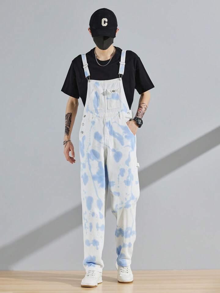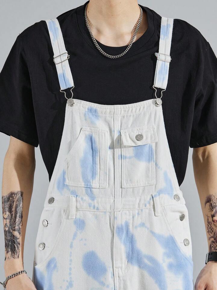 Hombres Petos mezclilla algodón de tie dye sin camiseta