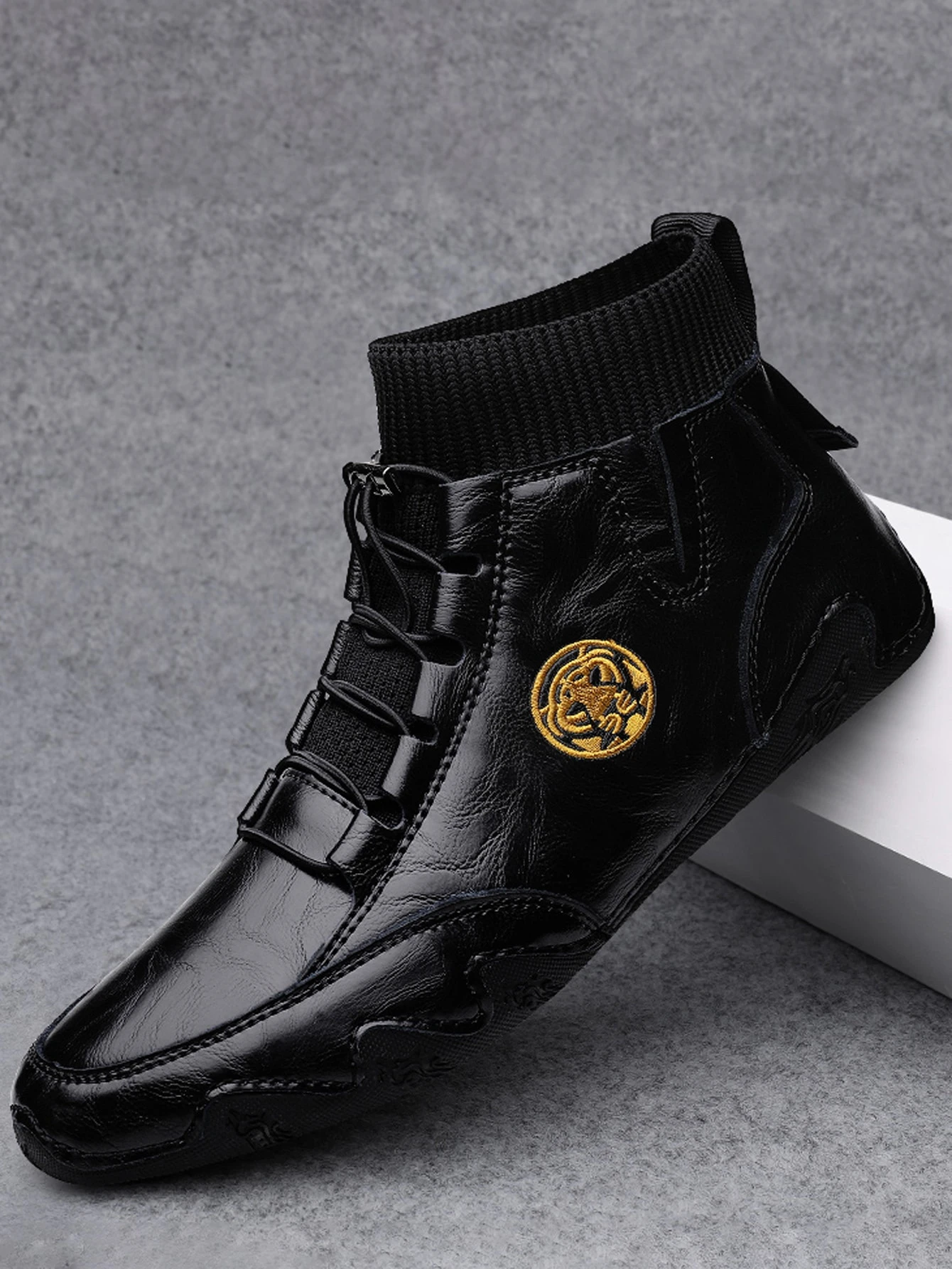 Hombres Botas con tigre con bordado con cordón delantero hecho a mano