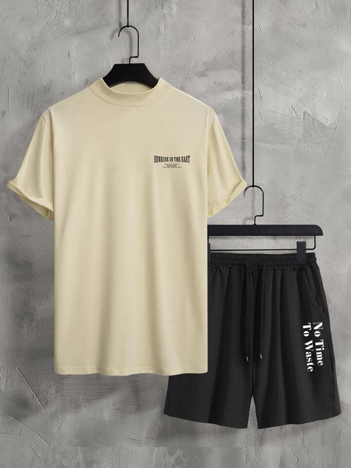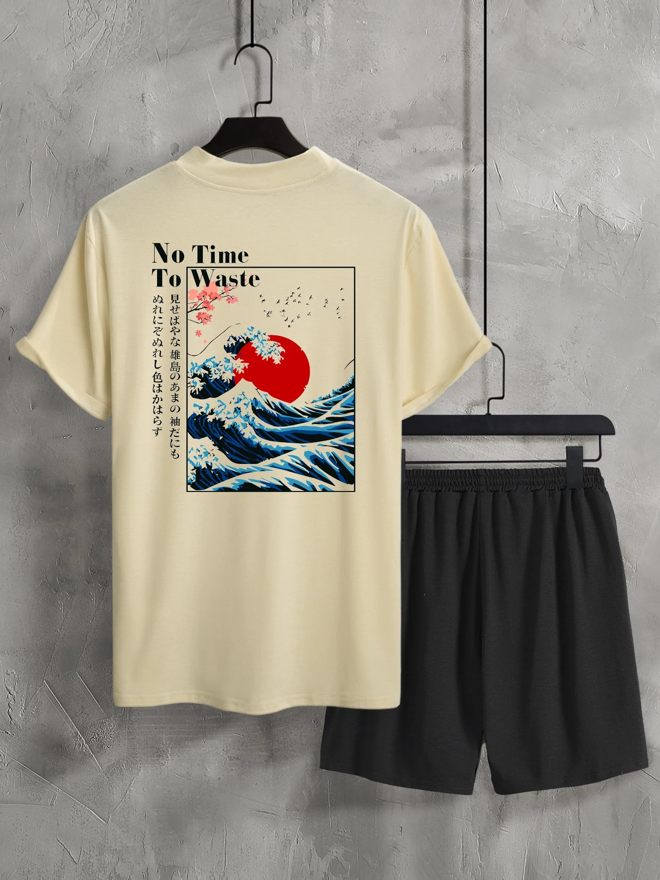 Hombres Shorts con camiseta de onda & con estampado de letra japonesa
