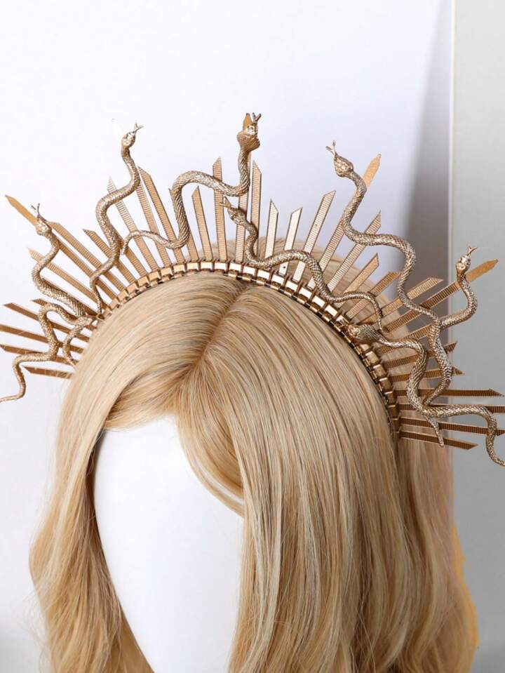 HOWAWAY Diadema Dorada Estilo Serpiente Hecha A Mano, Exagerada, Con Corbata, Adecuada Para Fiestas Y Festivales, 1 Ud.