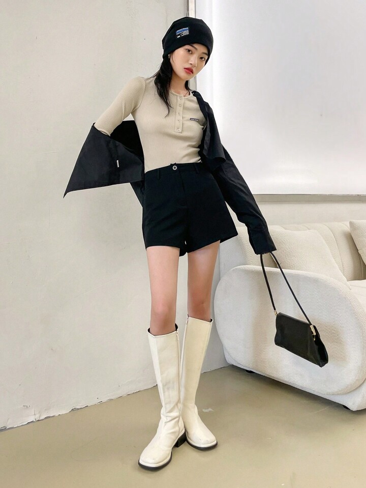 Camiseta de manga larga para mujer con detalle de parche y cierre de botones a la mitad