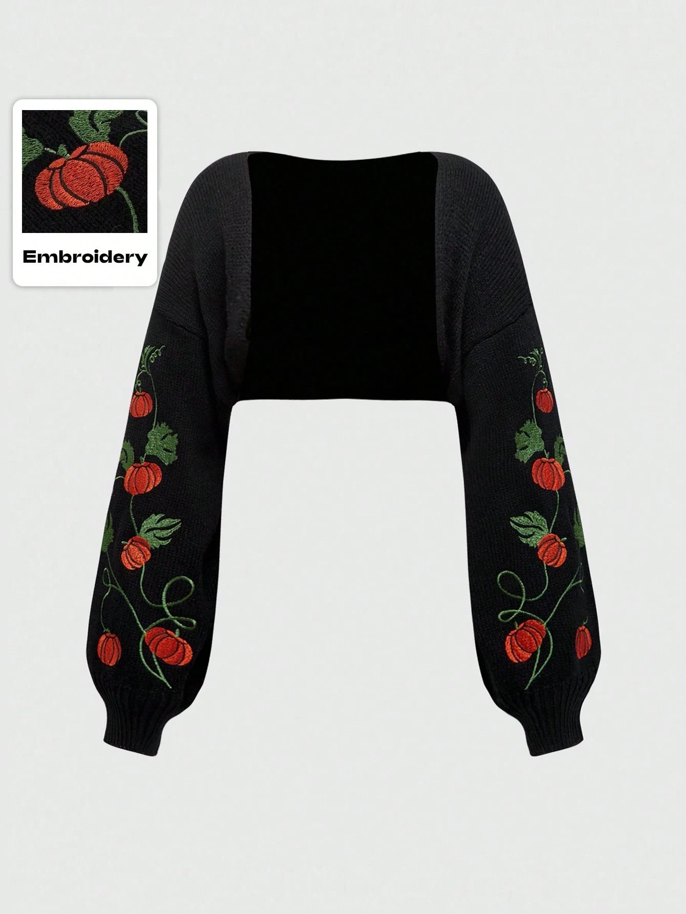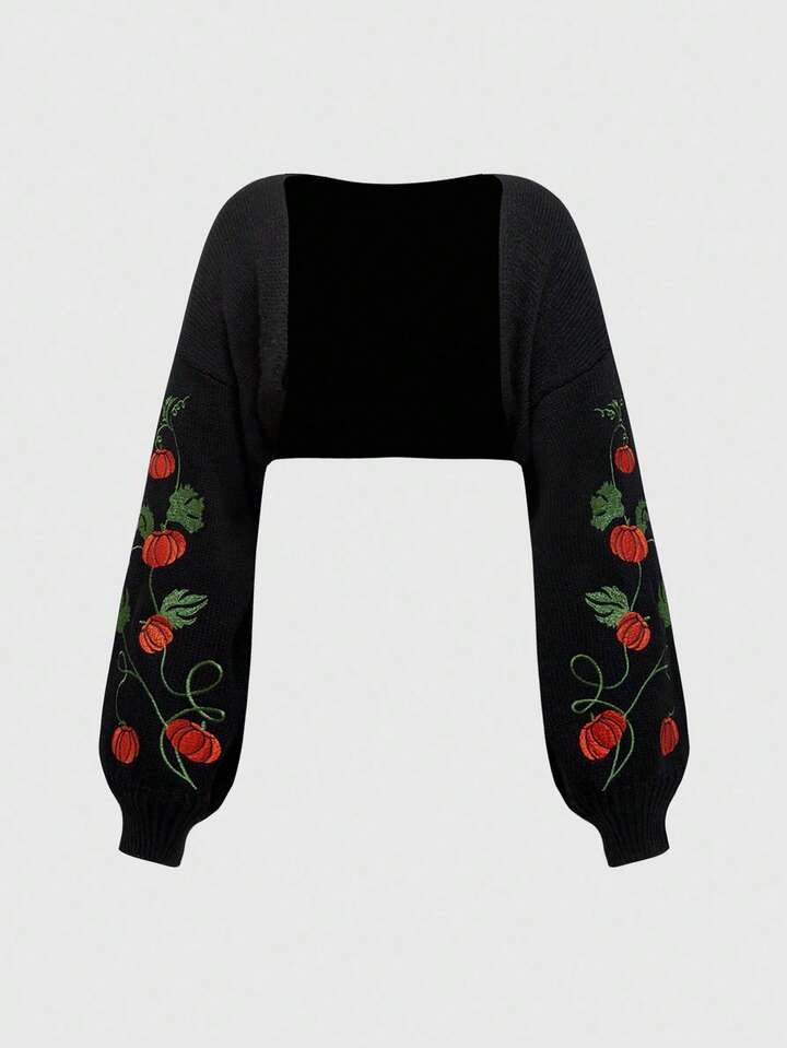 Goth Chaqueta corta de mujer con bordado de enredadera de calabaza gótica de Halloween, delgada y como cubierta exterior