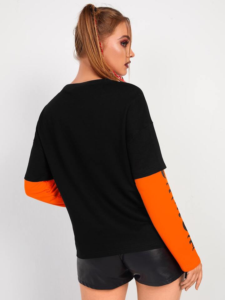 Sudadera con estampado de halloween de hombros caídos 2 en 1