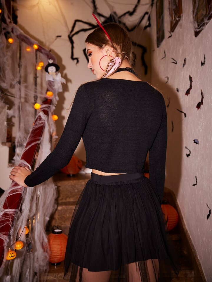 Cárdigan corto con estampado de esqueleto y corazón de Halloween