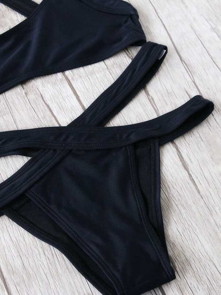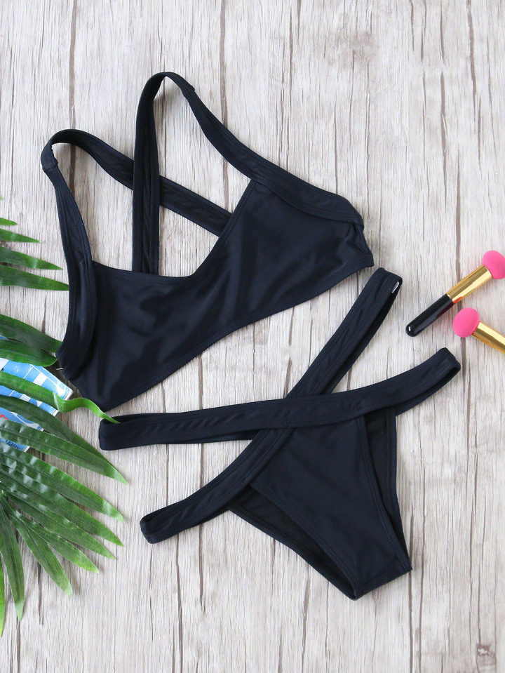 Set bikini sexy con detalle cruzado - negro