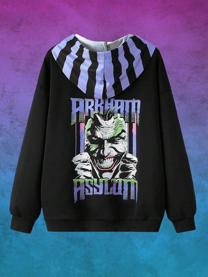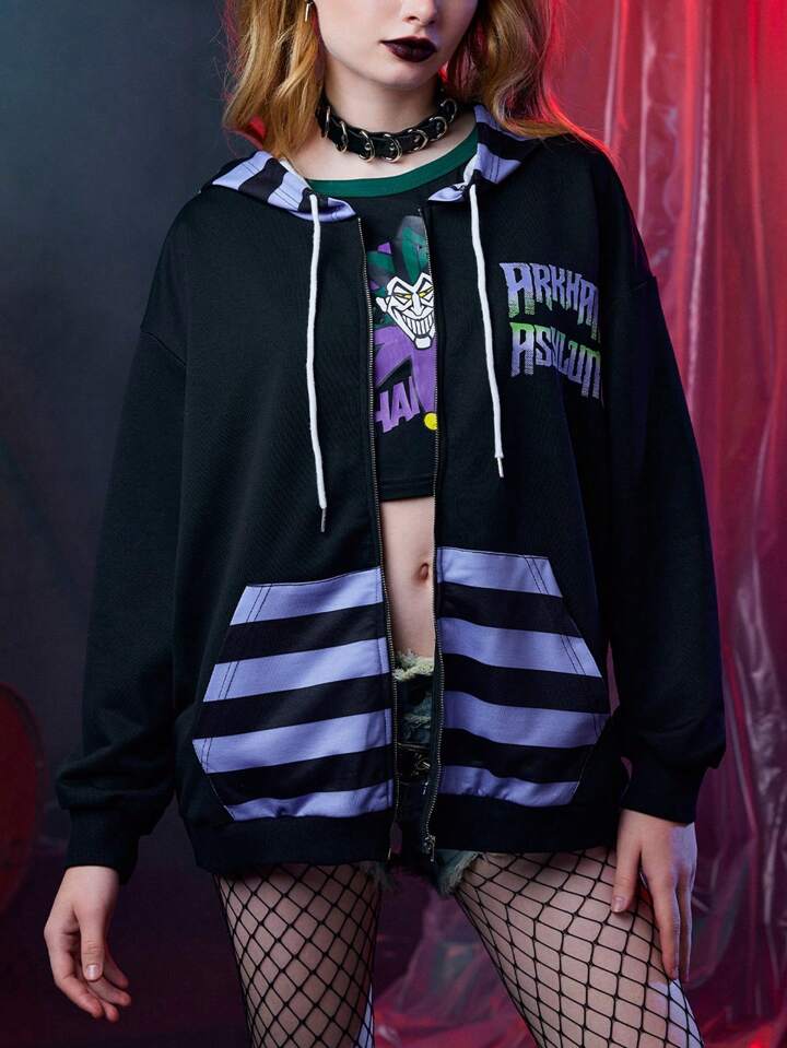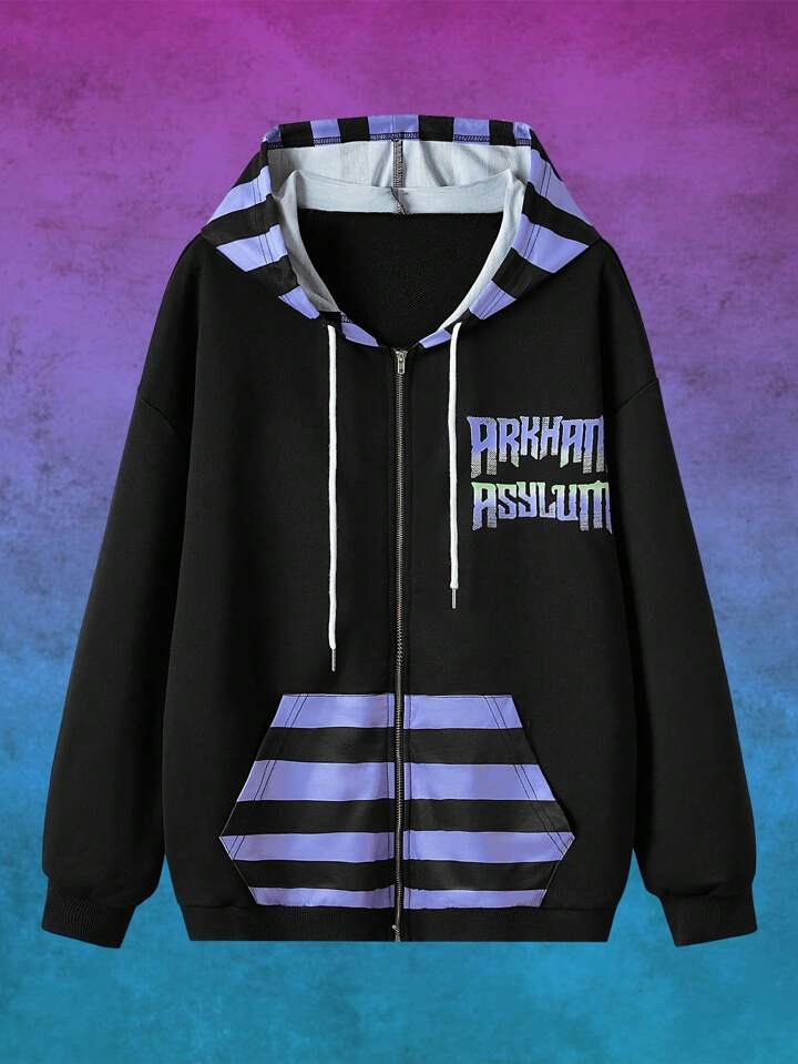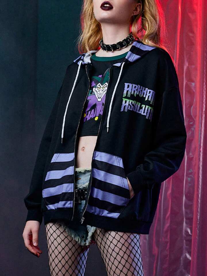 Harley Quinn | ROMWE Capucha de rayas con cremallera con cordón