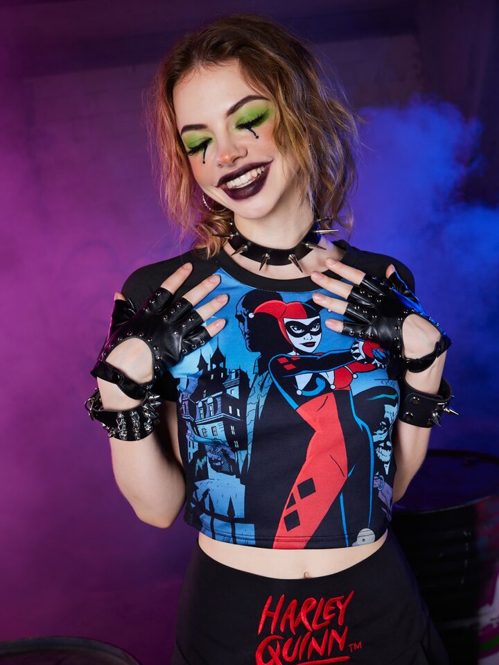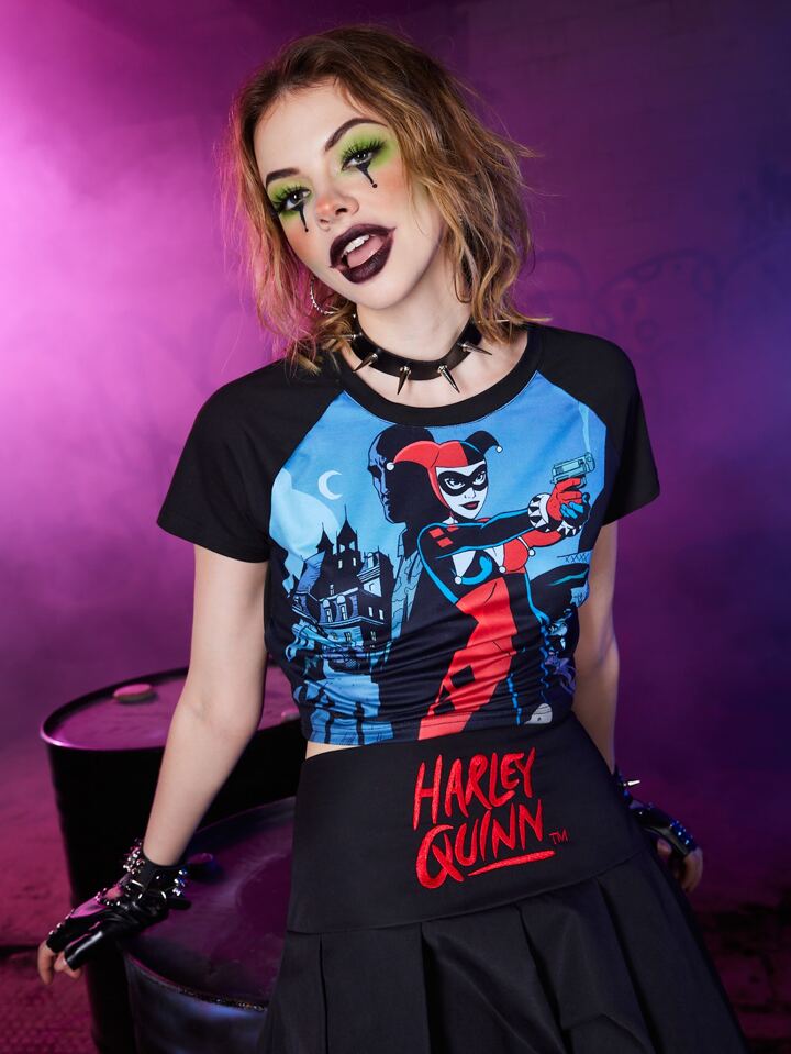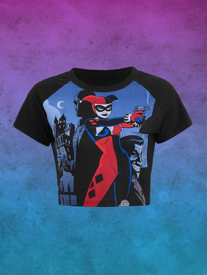 Harley Quinn | ROMWE Camiseta corta con manga raglán y estampado de personajes de anime para mujer, ideal para verano