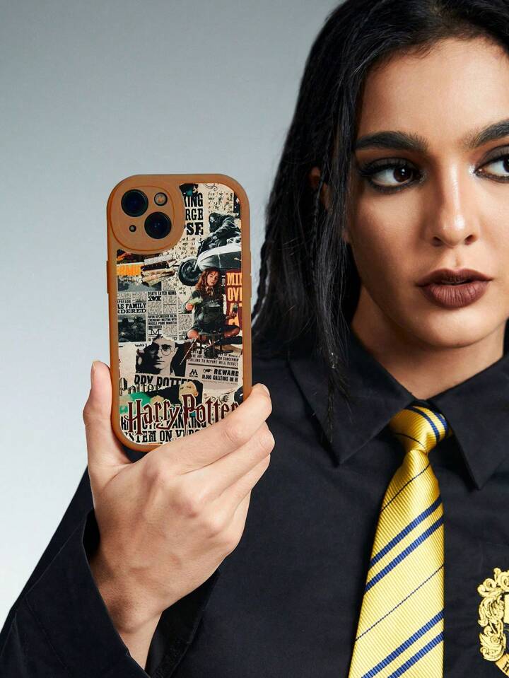 Harry Potter | ROMWE 1 pieza Funda de teléfono con patrón de póster de figura compatible con iPhone y otros modelos