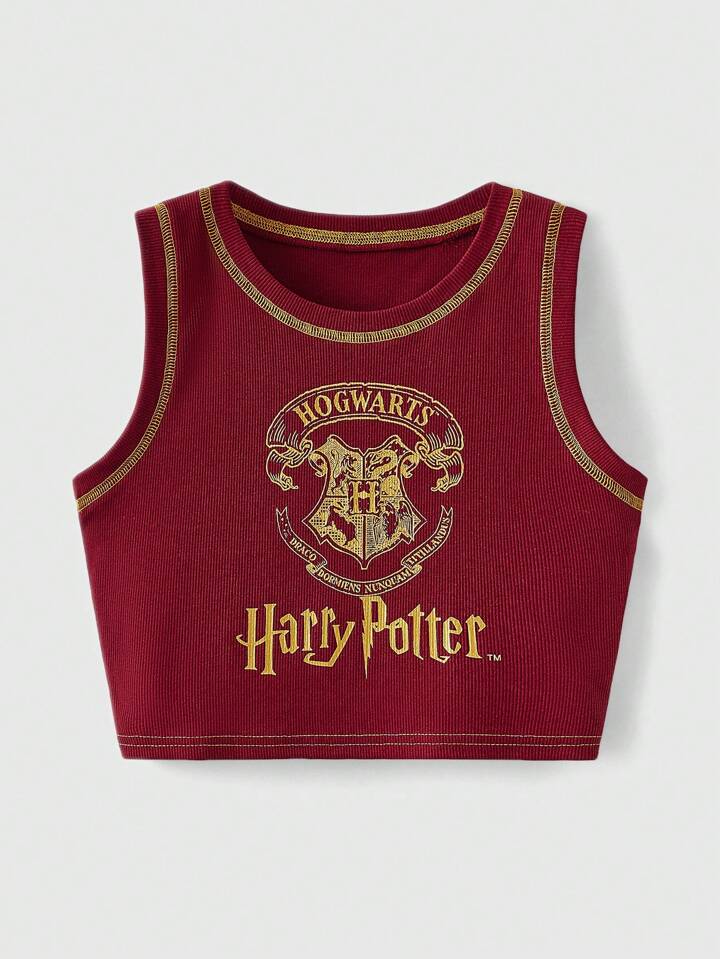 Harry Potter | ROMWE Parte superior tipo tank con gráfico de letra y puntada de contraste, escuela