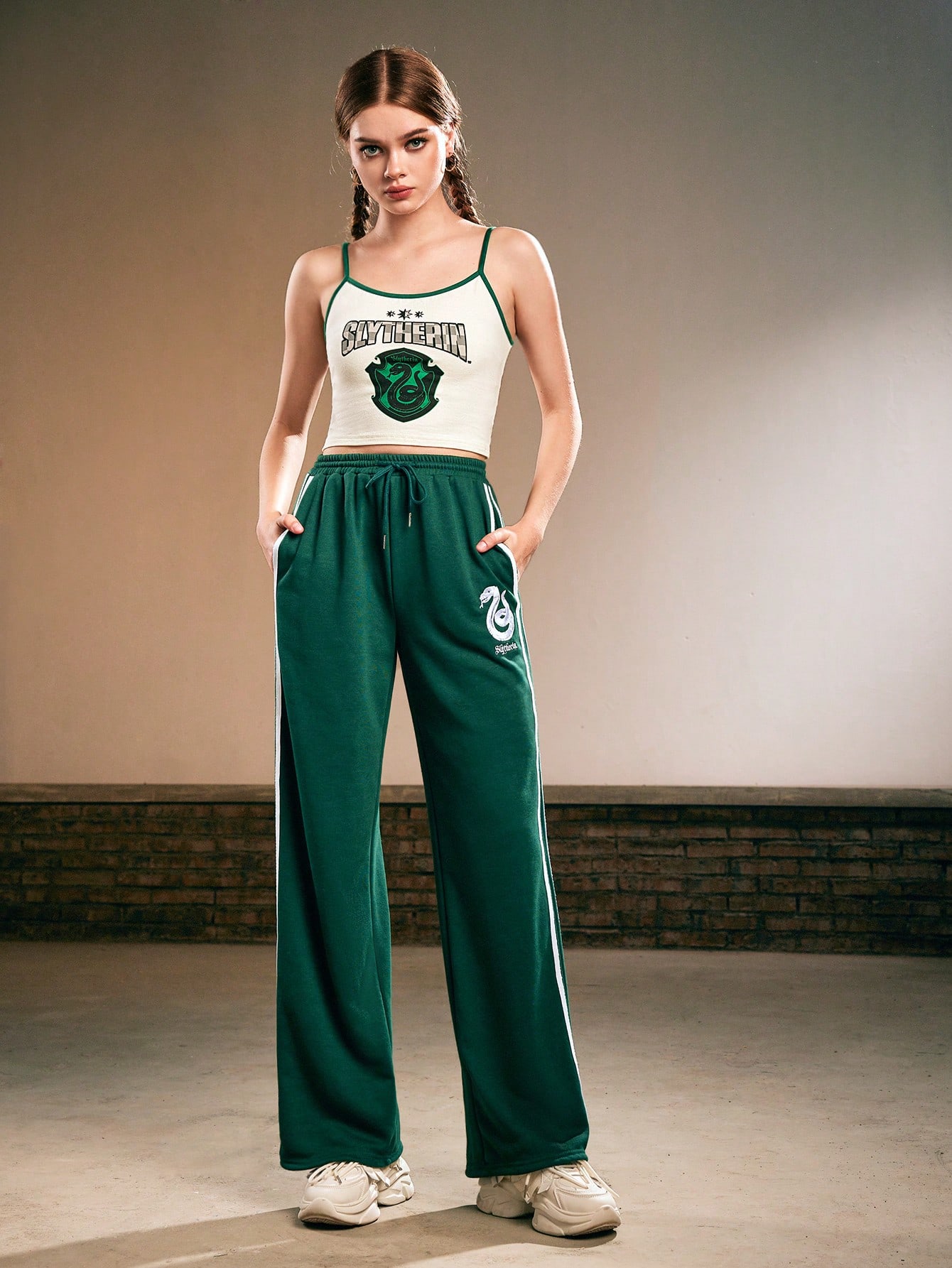 Harry Potter | ROMWE Top De Tirantes Corto De Impresión De Letra Con Detalles De Contraste