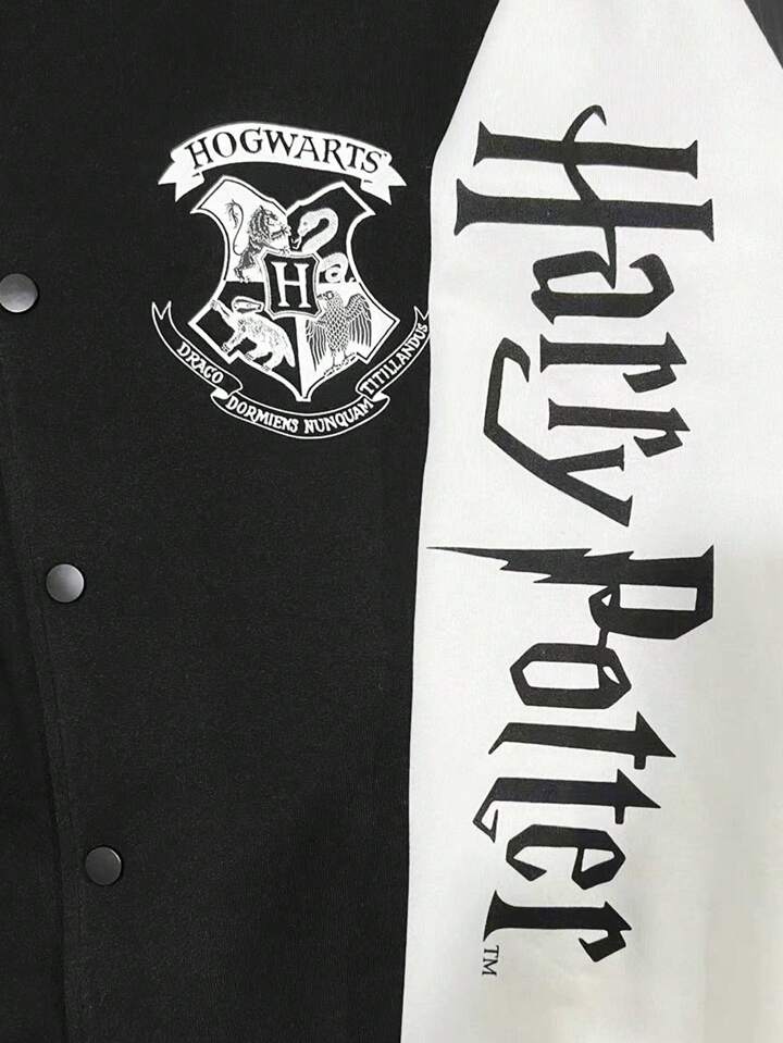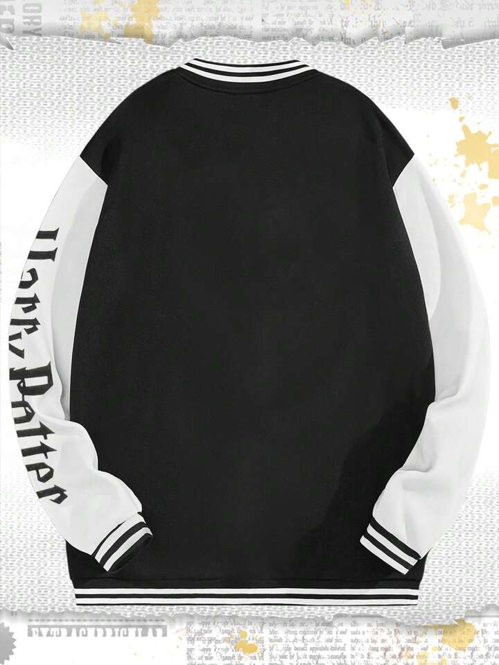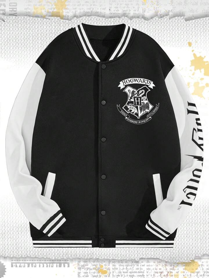 Harry Potter | ROMWE Chaqueta De Béisbol Para Hombre De Bloques De Colores Con Letras Impresas