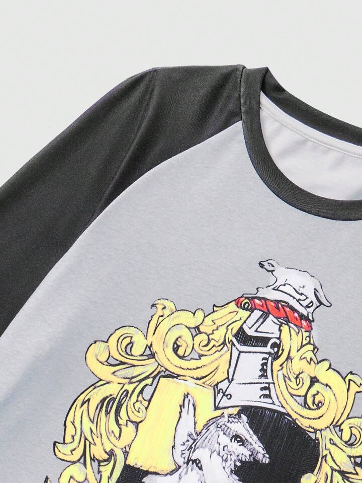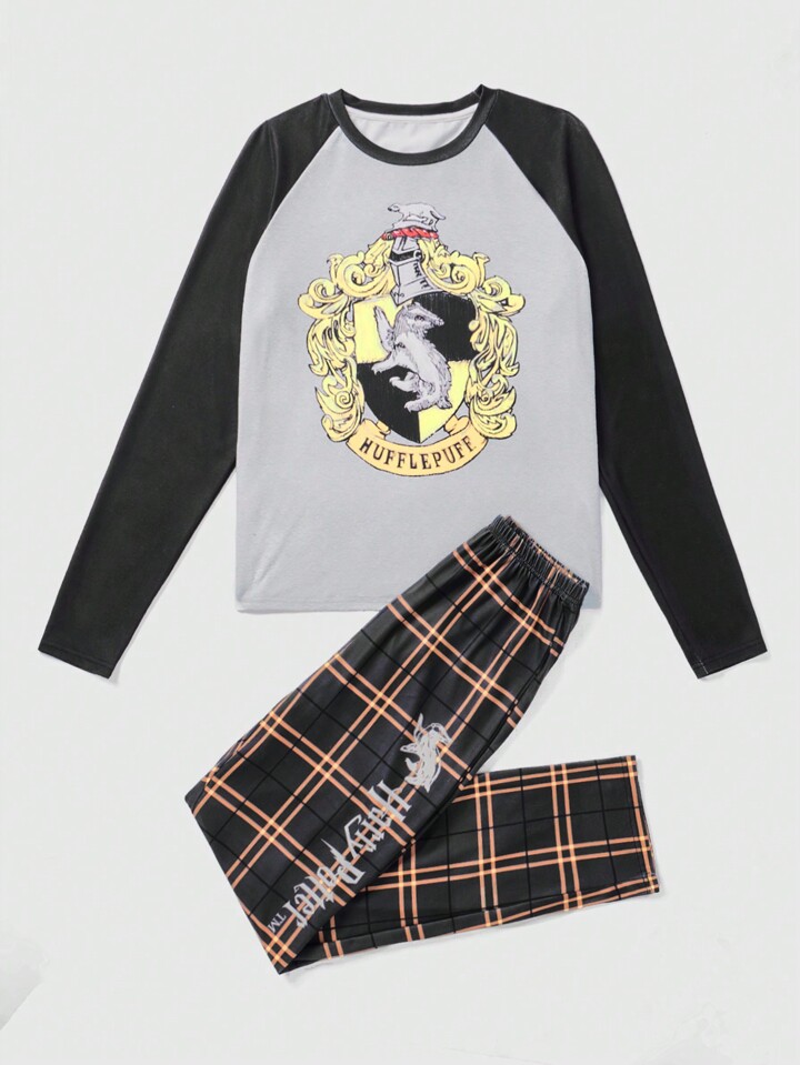 Harry Potter | ROMWE Conjunto De Pijama De Mujer De Camiseta Con Estampado De Dibujos Animados Y Pantalones Largos A Cuadros