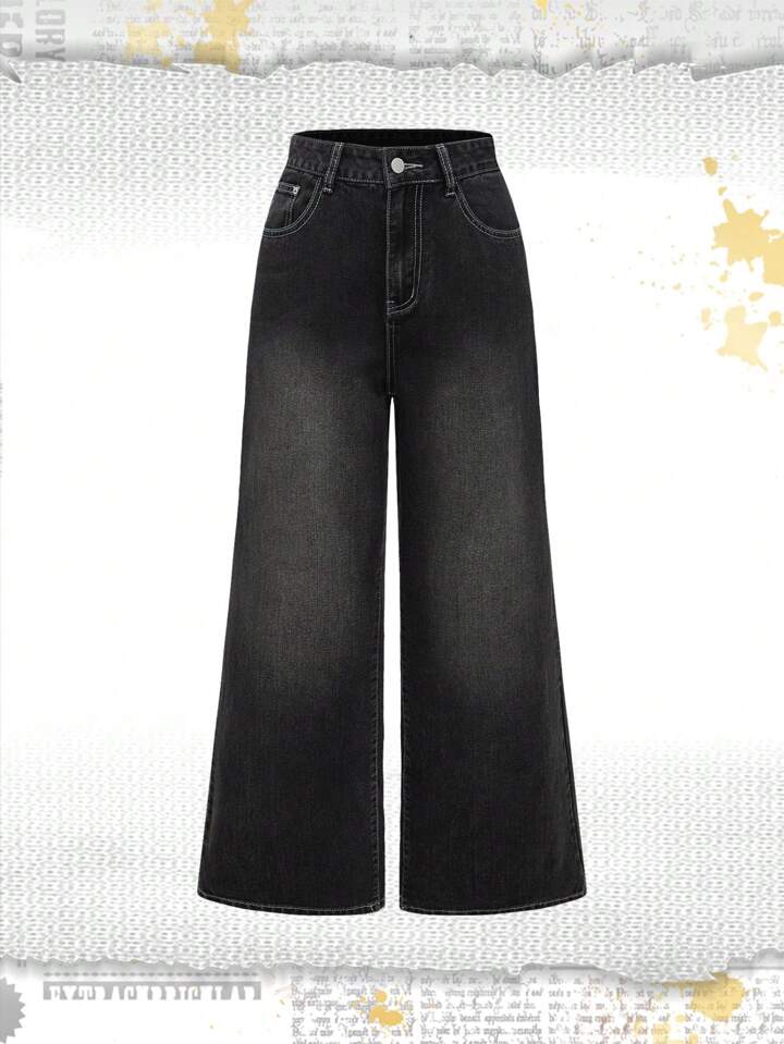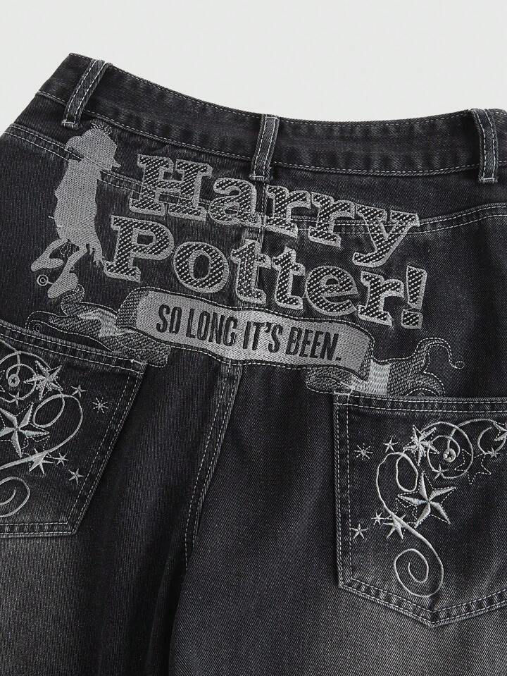 Harry Potter | ROMWE Jeans de pierna ancha casual con bordados de dibujos animados y letras para mujeres