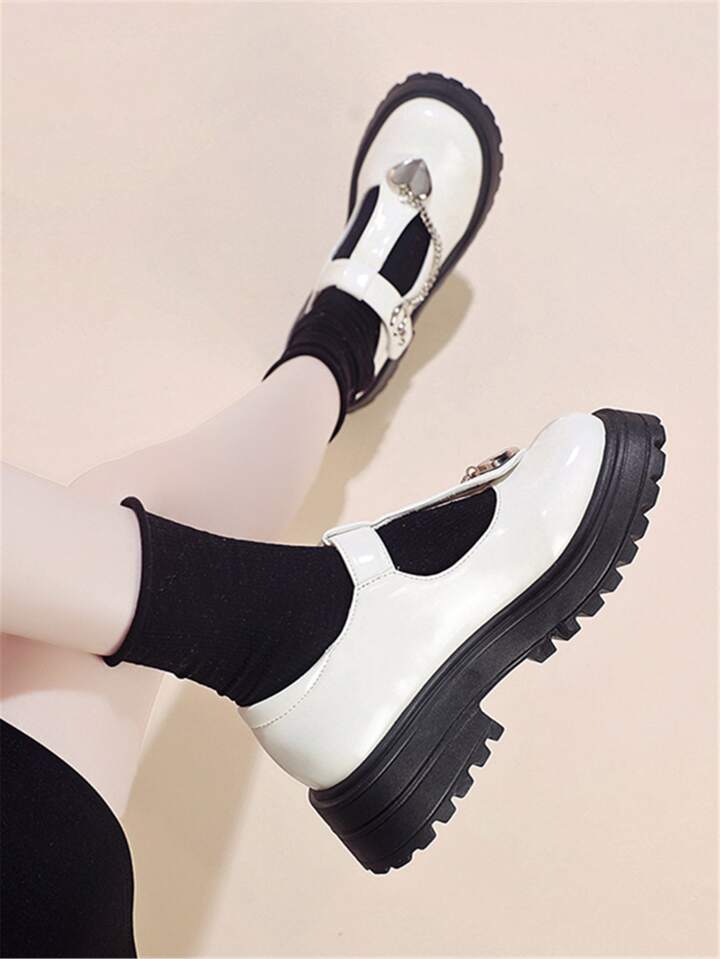 Zapatos mary jane con corazón & con diseño de cadena plataforma