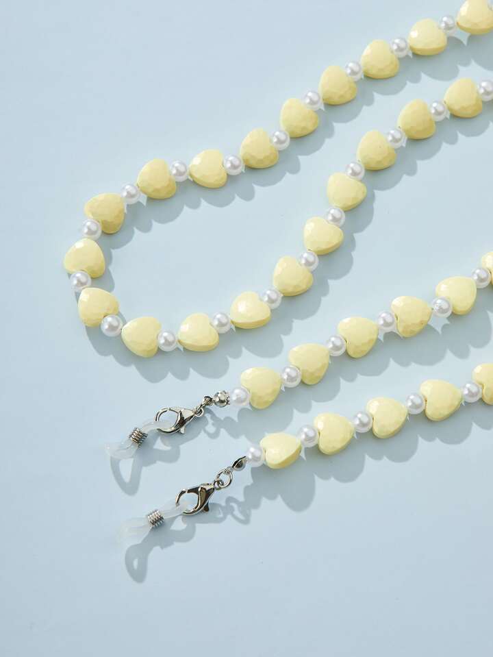 Cadena para gafas con corazón & con cuenta con perla artificial