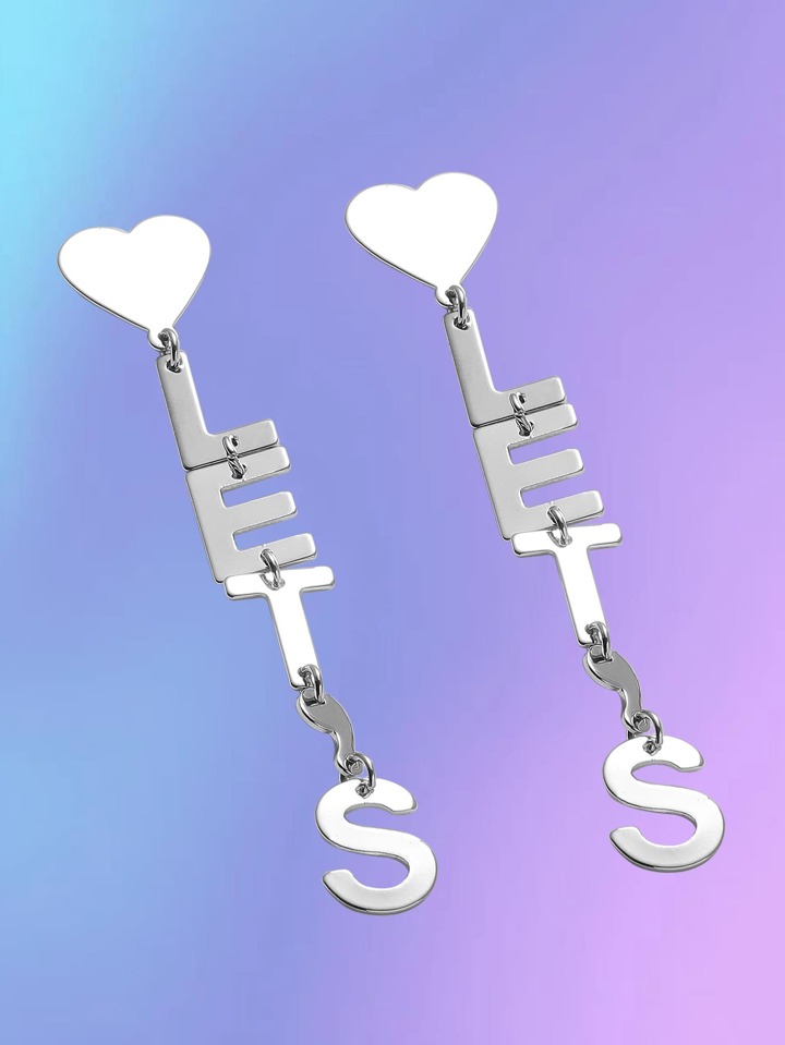 Pendientes largos con corazón & con letra