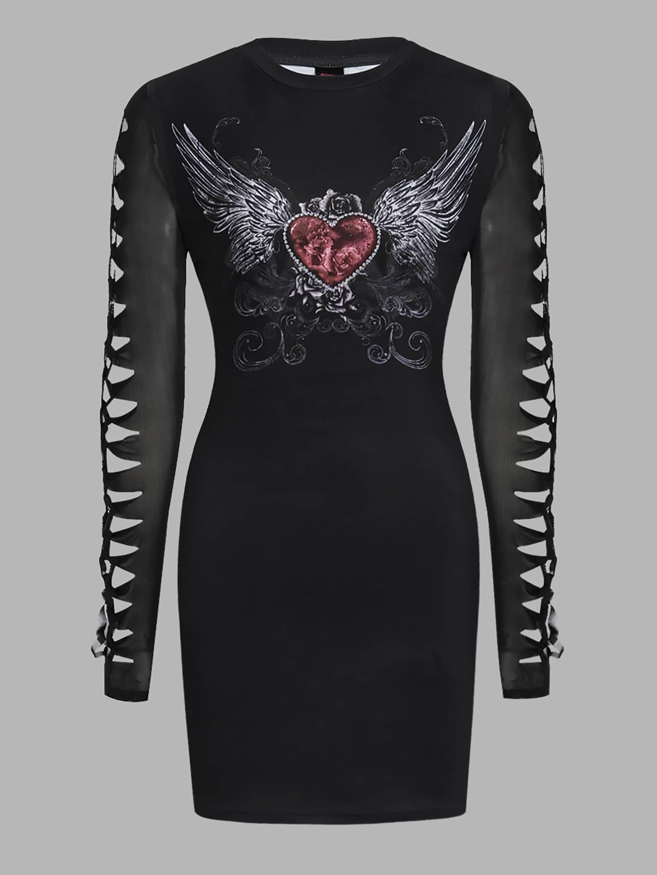Vestido ajustado con corazón & con estampado de ala de manga con abertura
