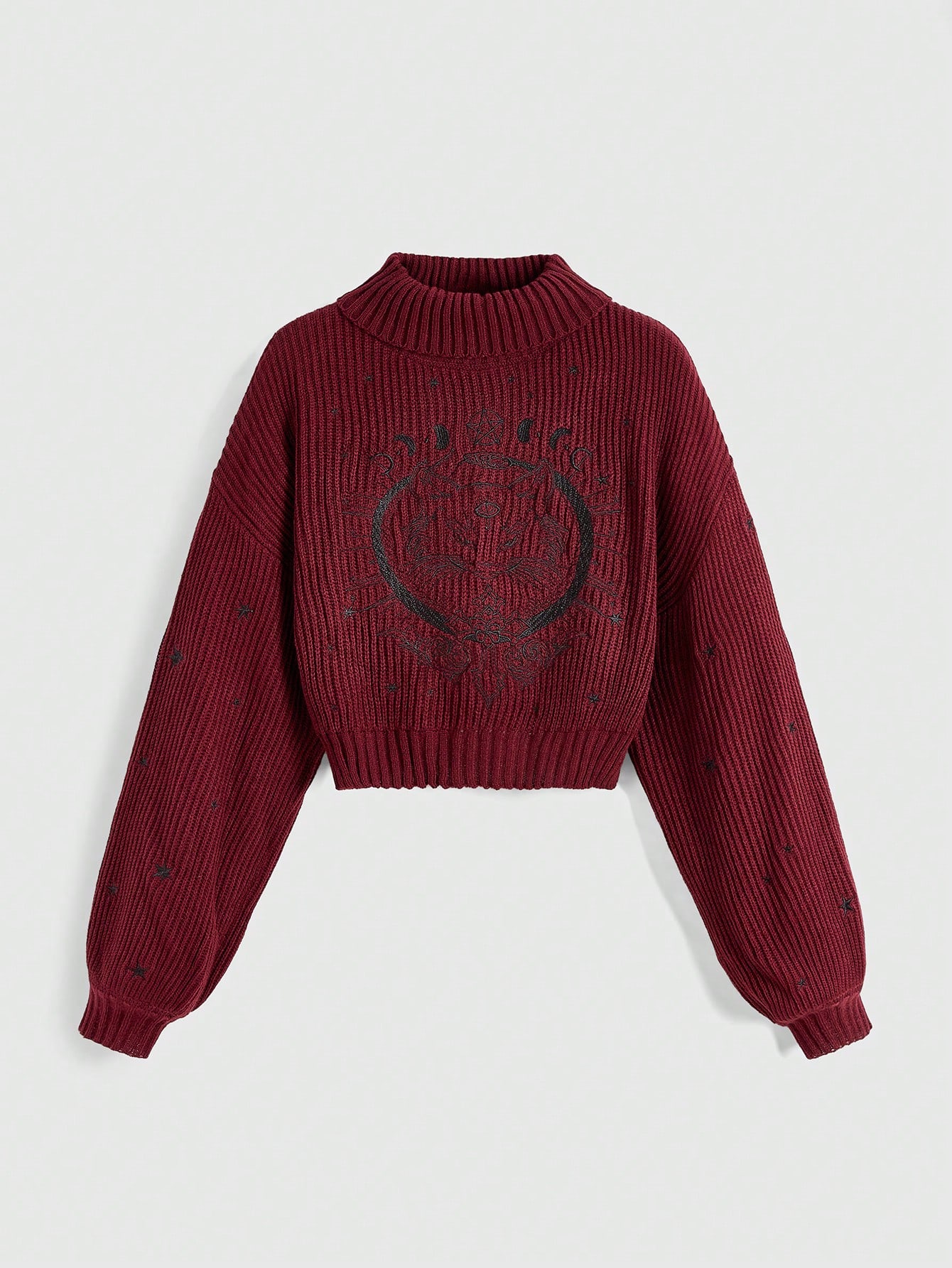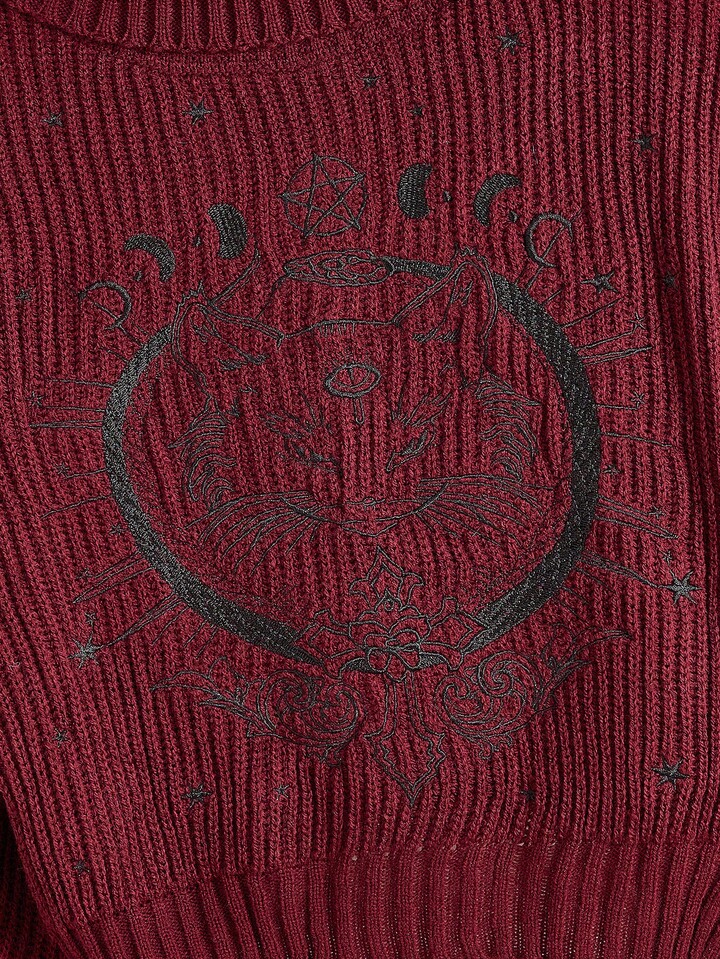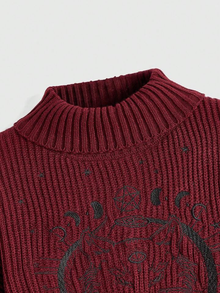 Goth Suéter de cuello alto, misterioso y oscuro, de color negro con bordado de gato gótico