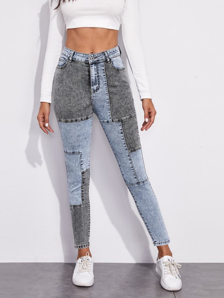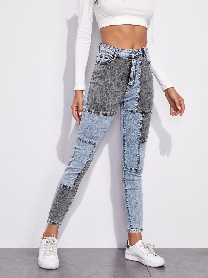 Jeans ajustados de color combinado