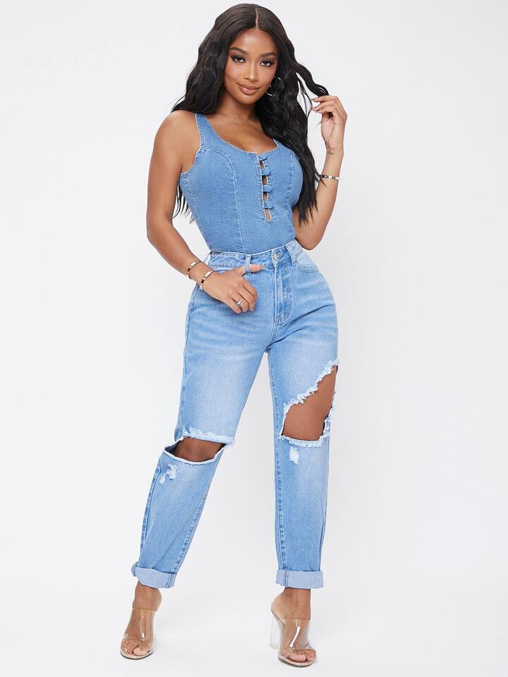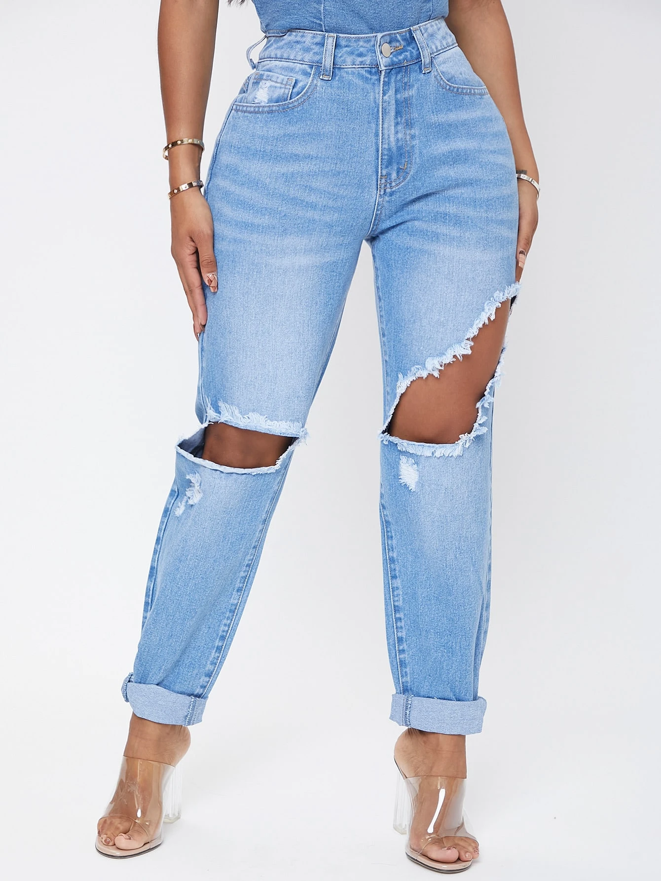 Jeans de talle alto con abertura