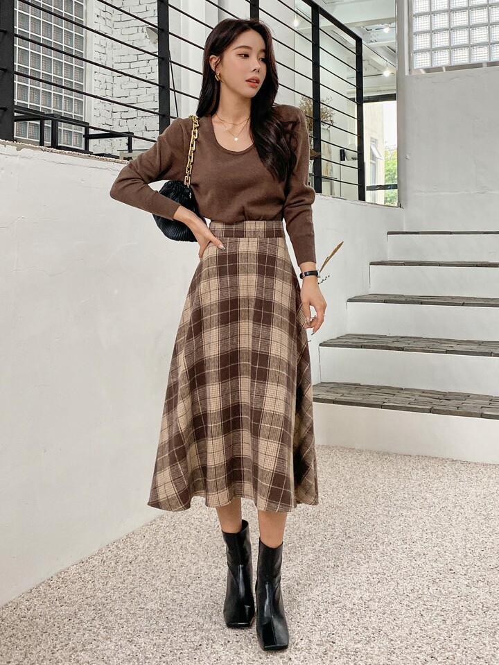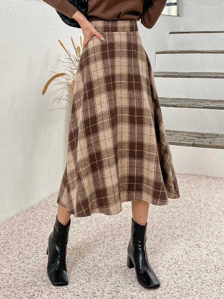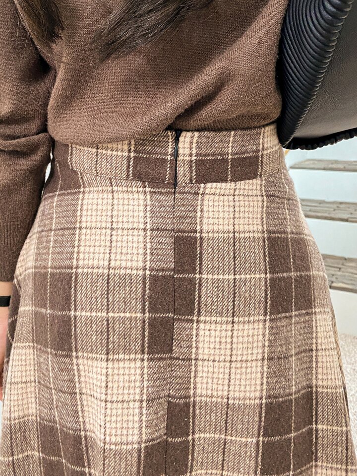 Falda plisada de talle alto a cuadros para otoño e invierno