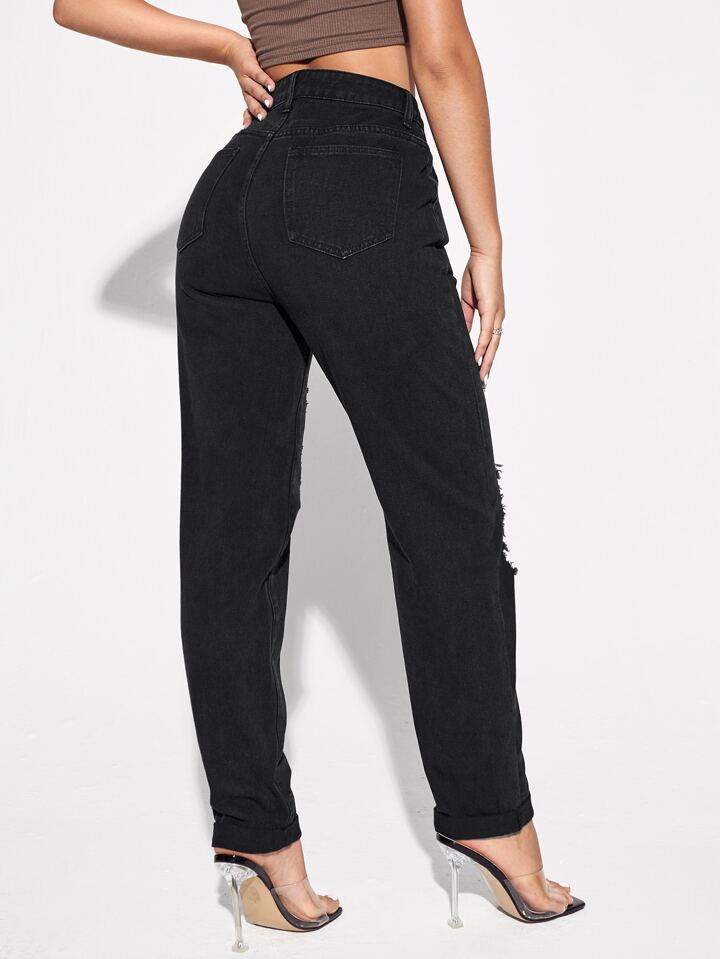 Jeans mom rotos de talle alto