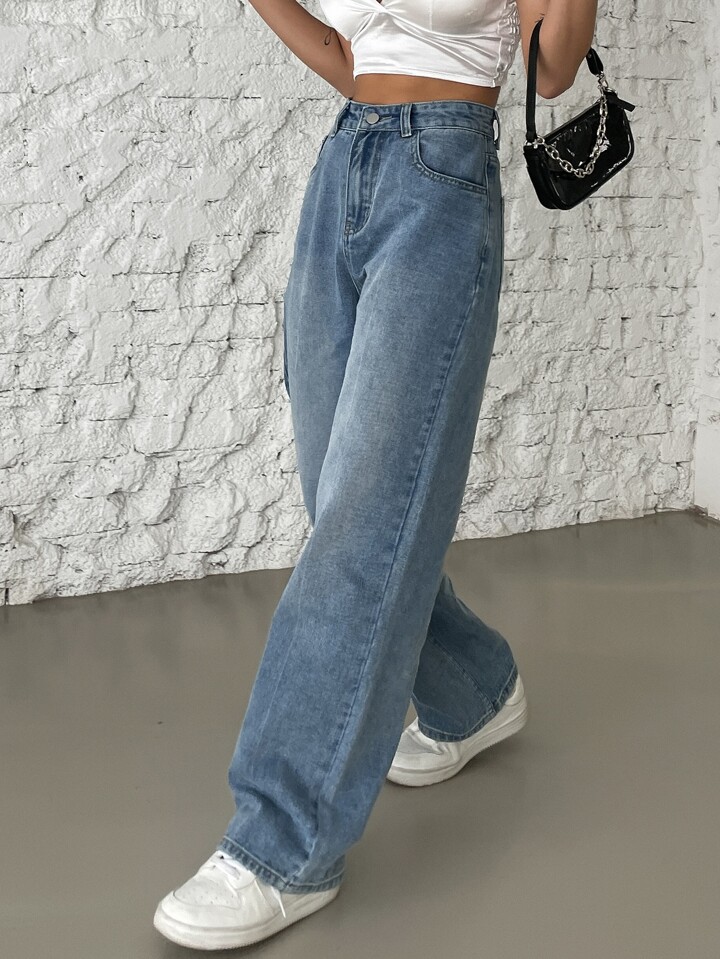 Jeans De Pierna Recta De Cintura Alta