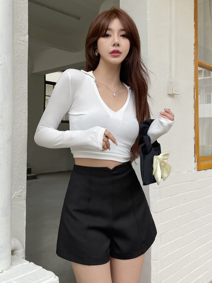 Shorts De Cintura Alta Y Pierna Ancha
