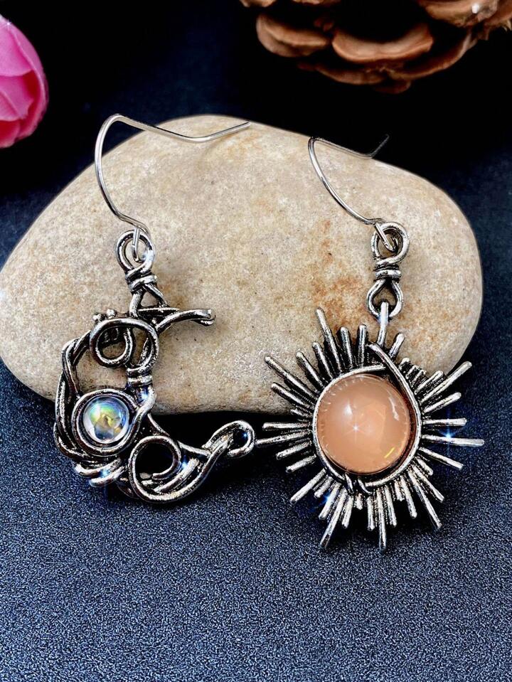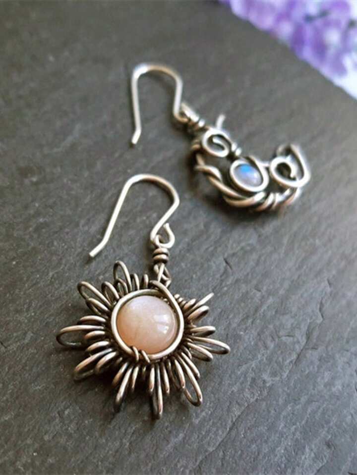 Hippie 1 Par De Pendientes Asimétricos Con Diseño De Sol Y Luna