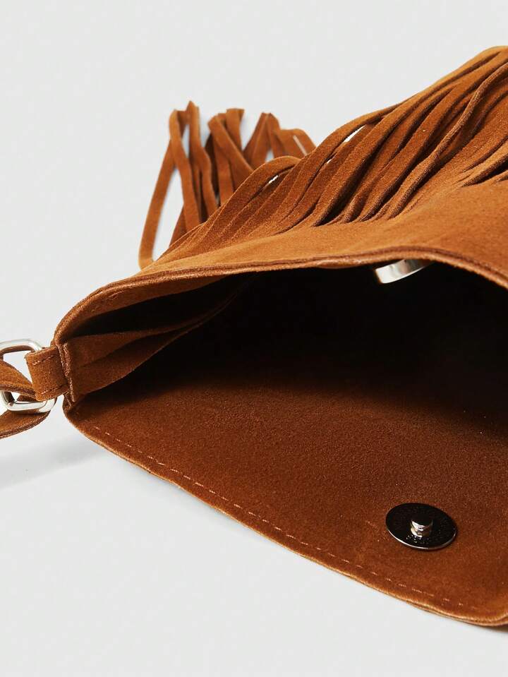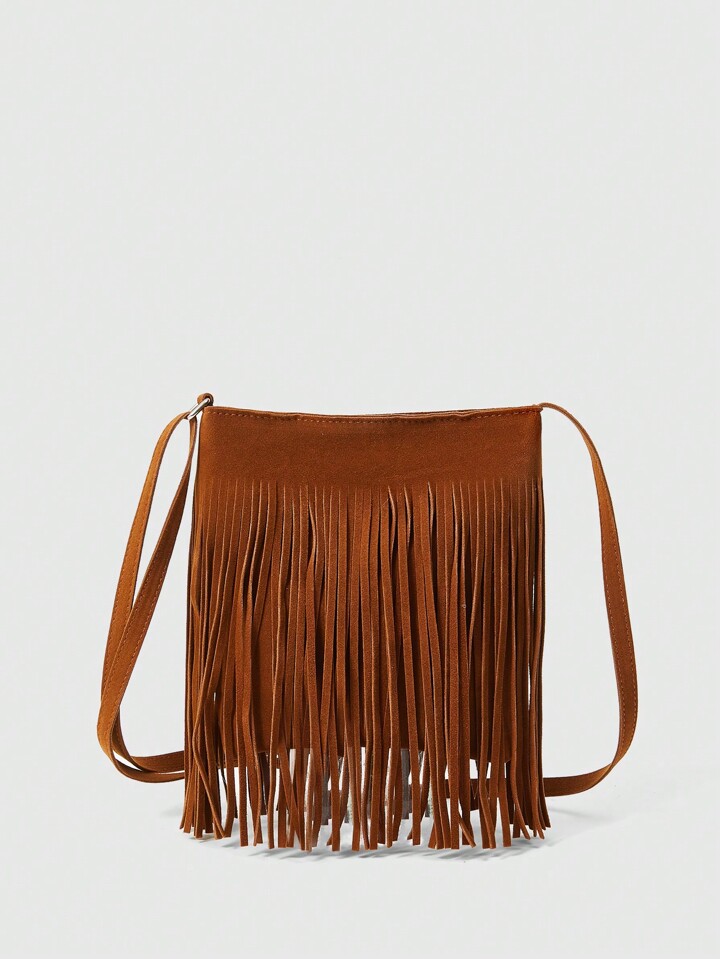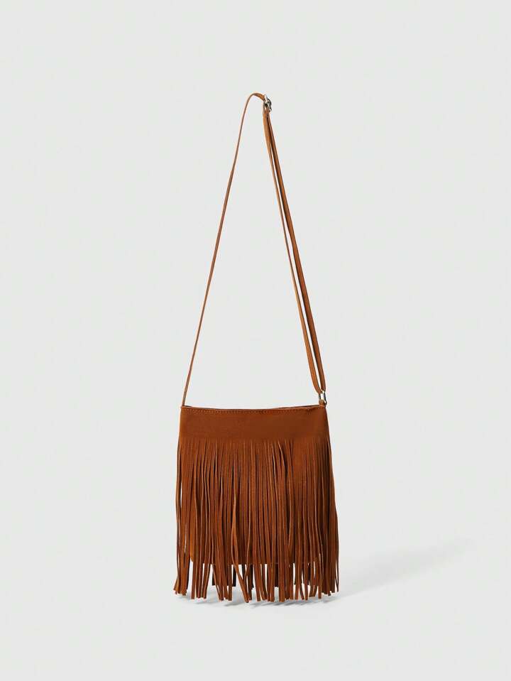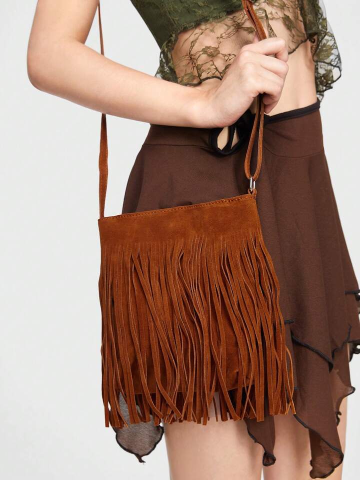 Hippie 1 Pieza Bolso De Hombro Con Flecos Marrones Para Mujer, Estilo Bohemio Para Usar A Diario Y Combinar Con Cualquier Prenda