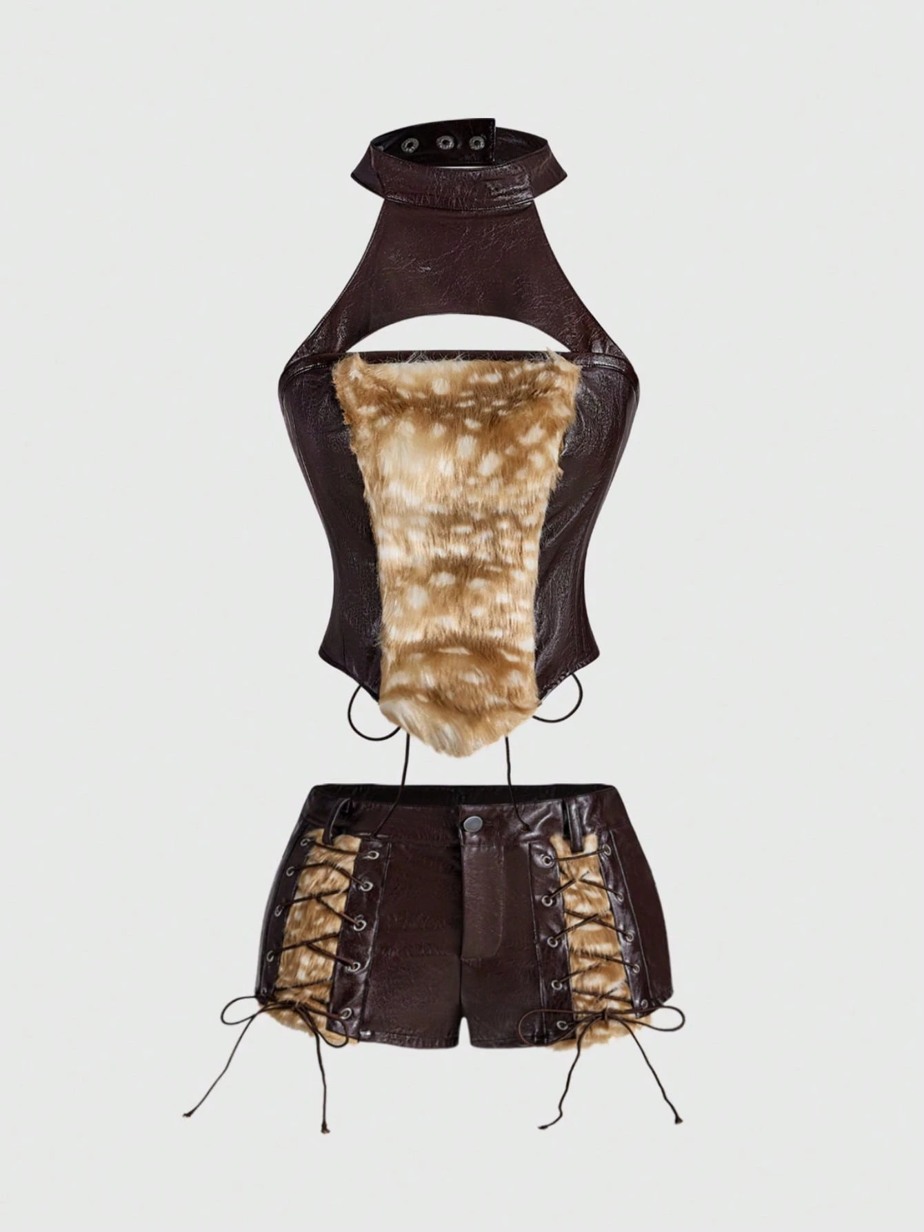 Hippie Set de 2 shorts súper bajos con estampado de animal salvaje y parche de ciervo en estilo vintage para mujeres