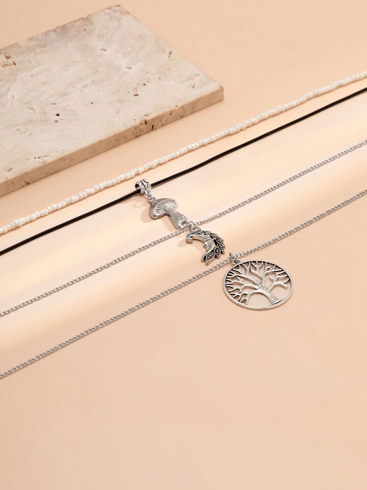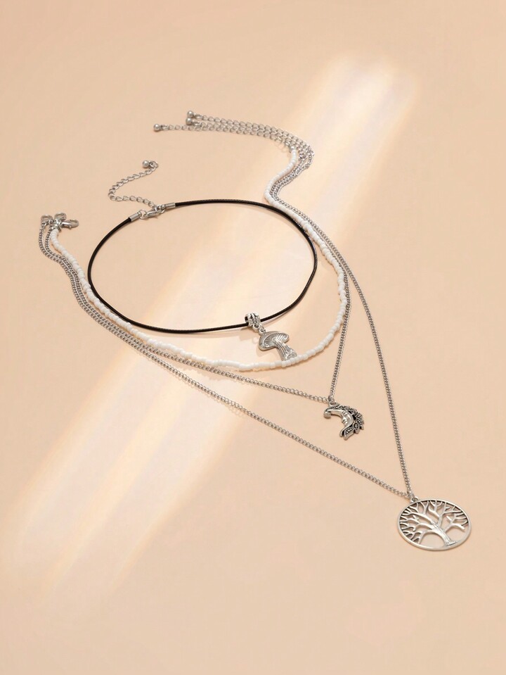 Hippie Set de 4 collares con cuentas, estilo Mori, con colgantes de setas y árboles