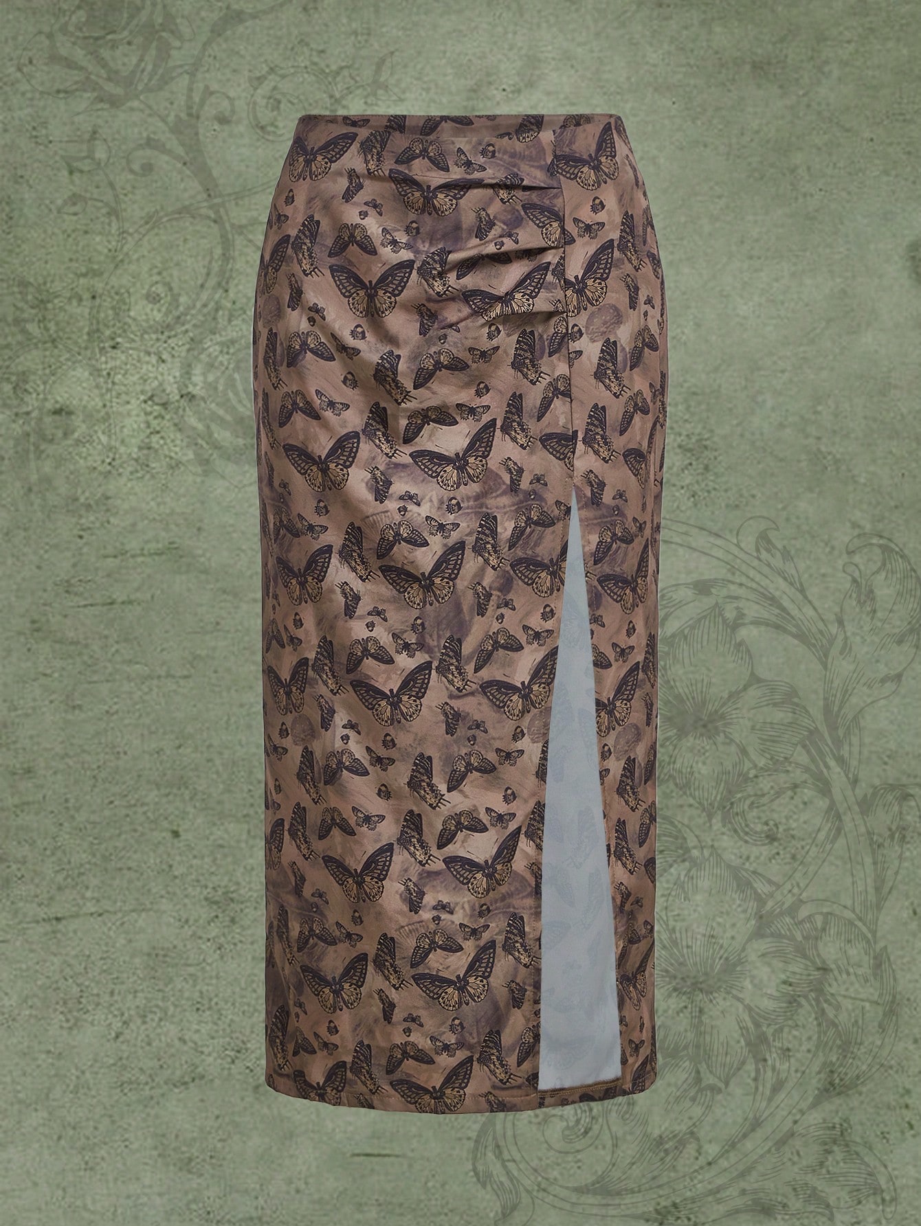 Hippie Falda con estampado de mariposa de muslo con abertura