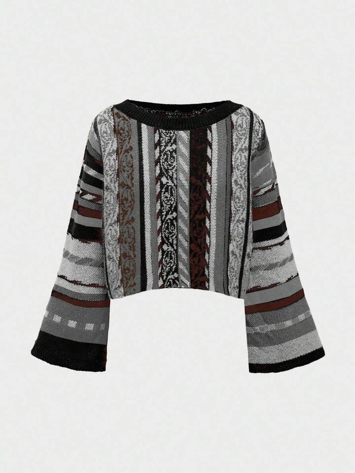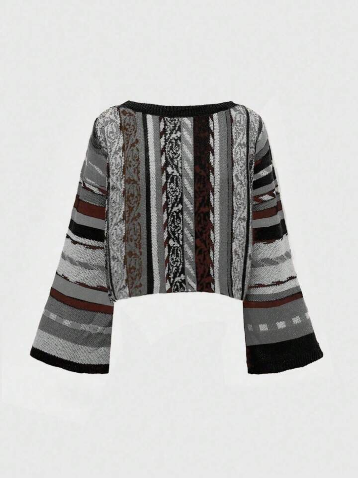 Suéter de cuello alto con rayas verticales estilo hippie bohemio