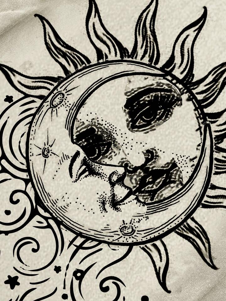 Hippie Top sin tirantes para mujer con estilo boho con estampado de luna y sol y busto fruncido