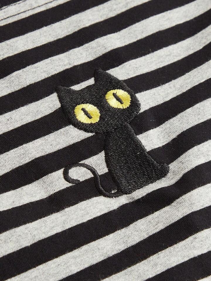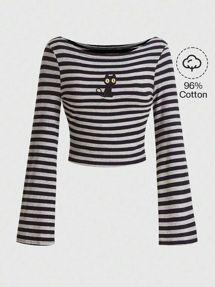 Hippie Camiseta de rayas con bordado de dibujos animados