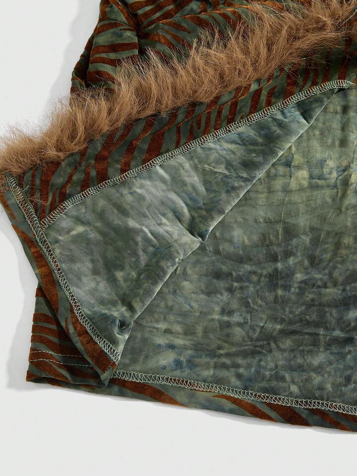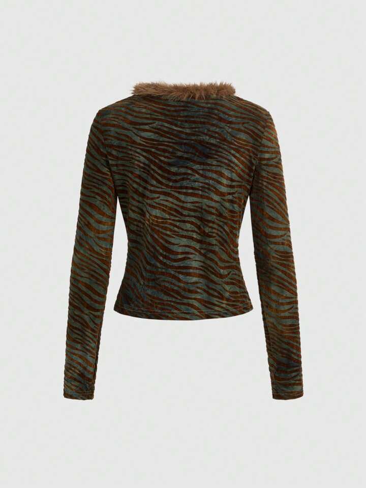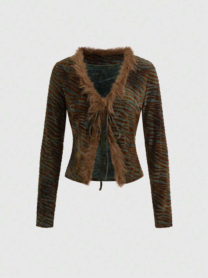 Hippie Top de mujer con estampado de animal, de terciopelo y parches de peluche, estilo elfo