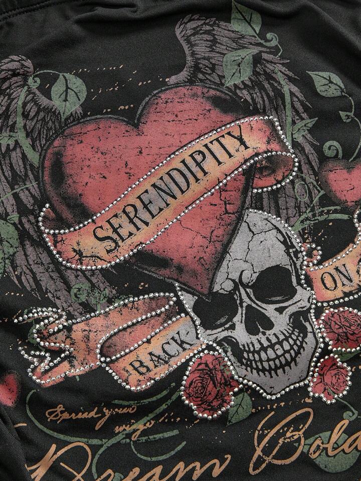 Hippie Top tubo con estampado de corazón y calavera en estilo gótico y Y2K desgastado para mujeres