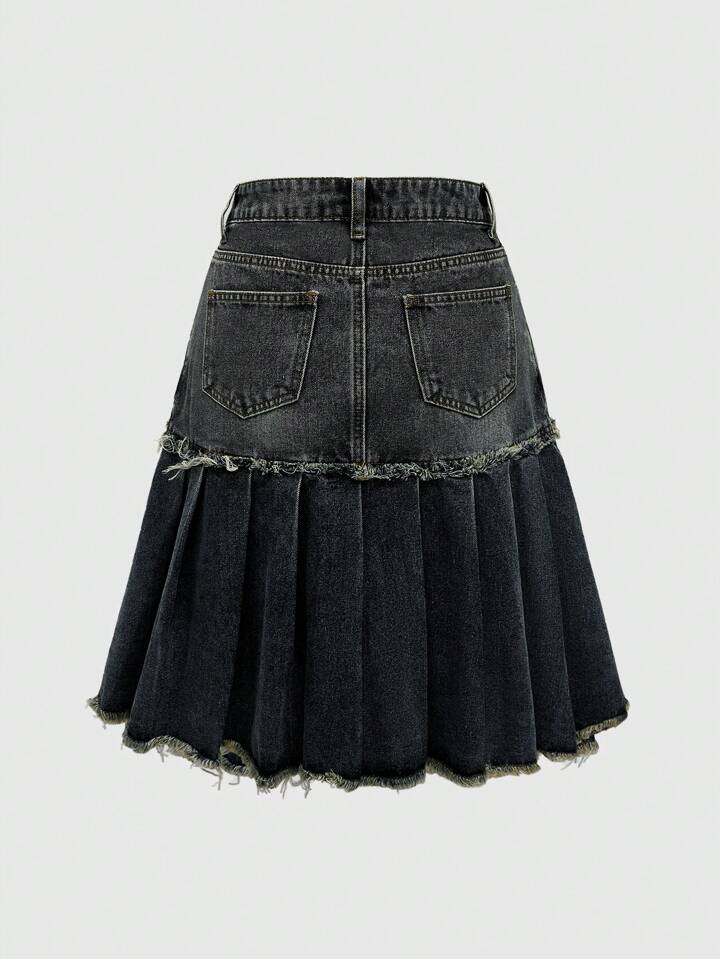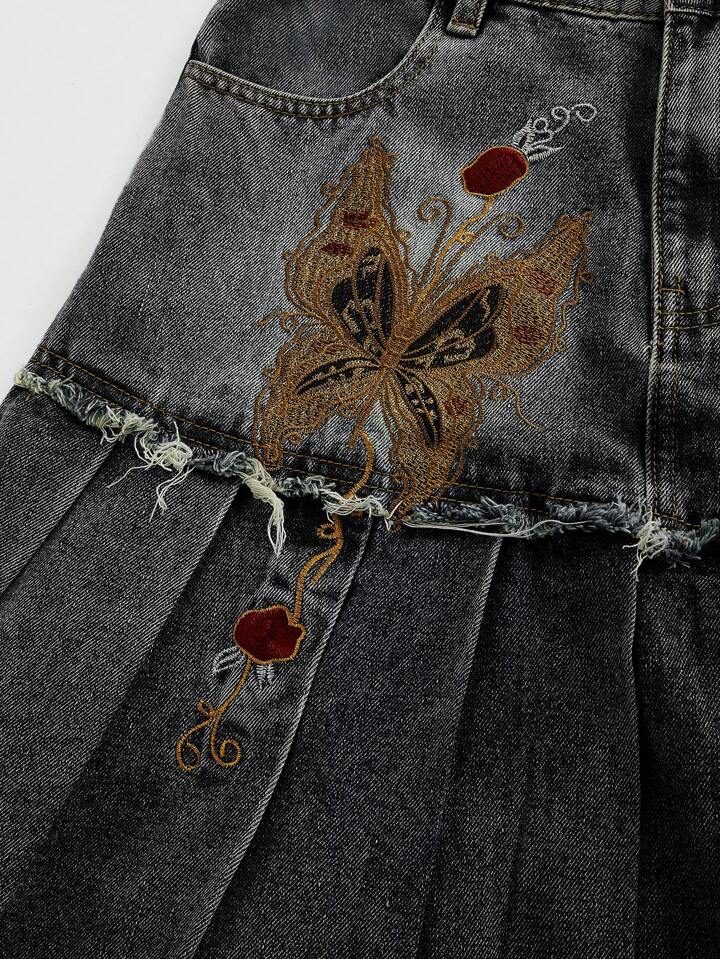 Hippie Falda midi de mezclilla vintage con bordado, cintura alta y bajo con volantes, con decoración única de mariposa brillante, estilo bohemio