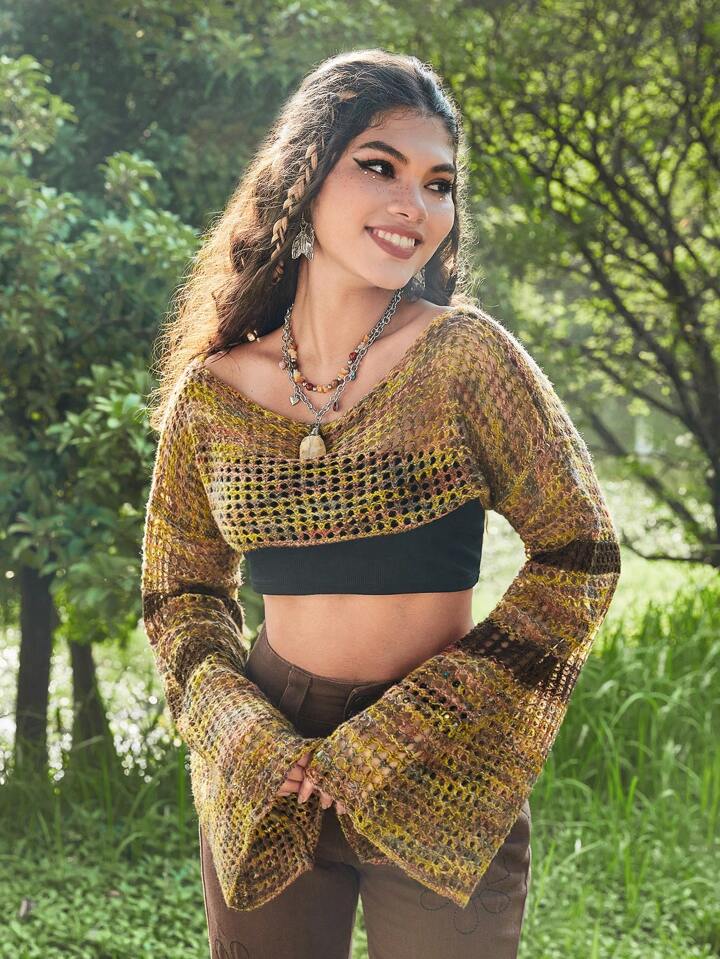 Hippie Jersey jaspeado con abertura súper crop sin top de tirantes