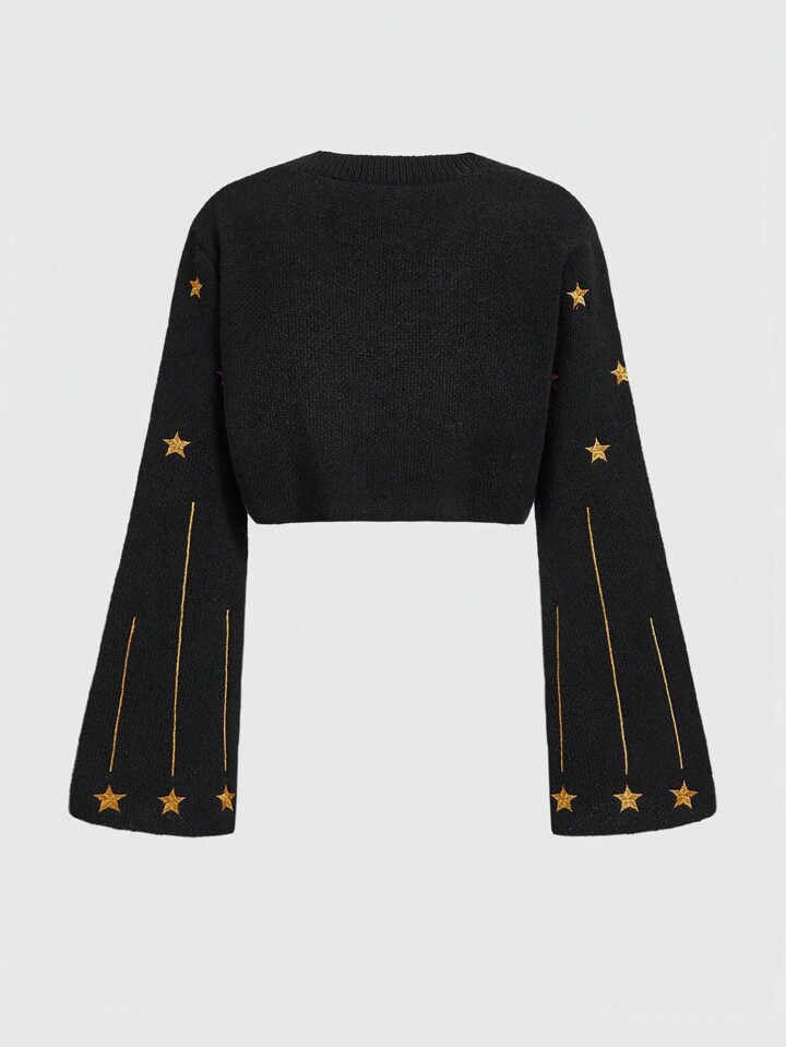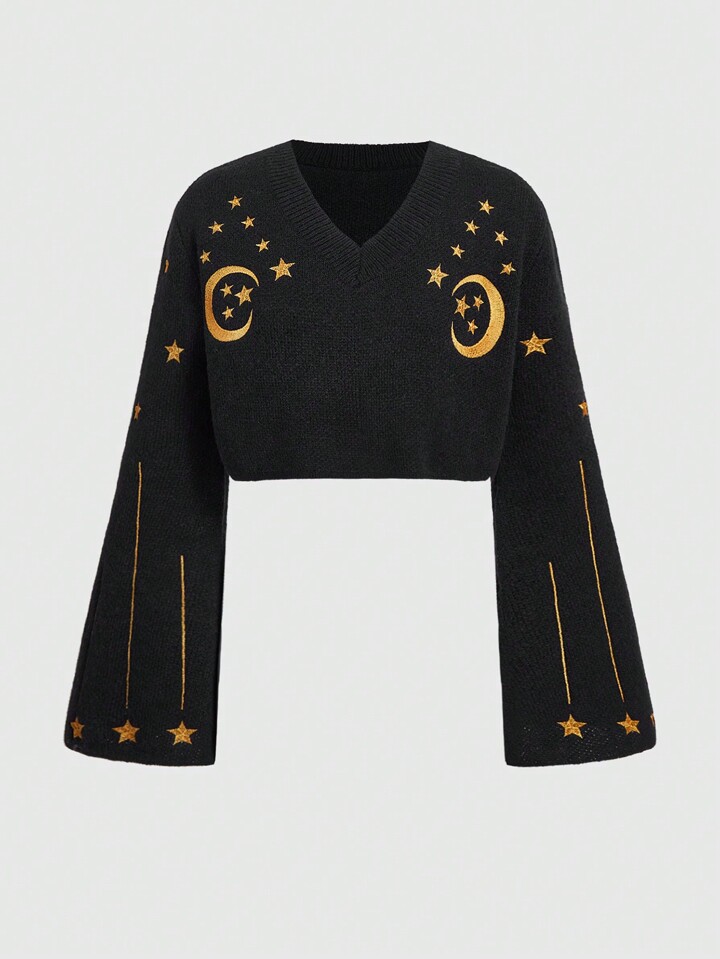 Hippie Jersey crop con luna y estrella con bordado de manga amplia