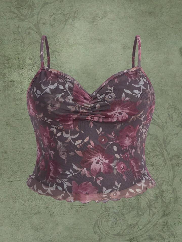 Hippie Talla grande Top de tirantes con estampado floral fruncido