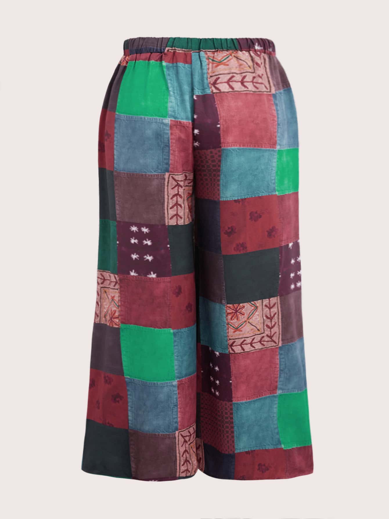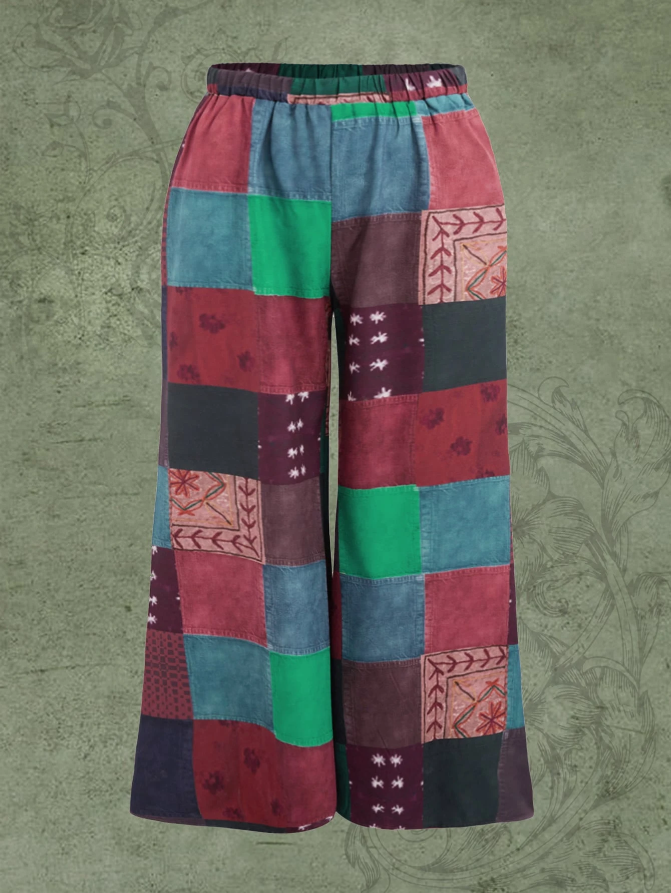 Hippie Pantalones de pierna ancha con estampado de retazo