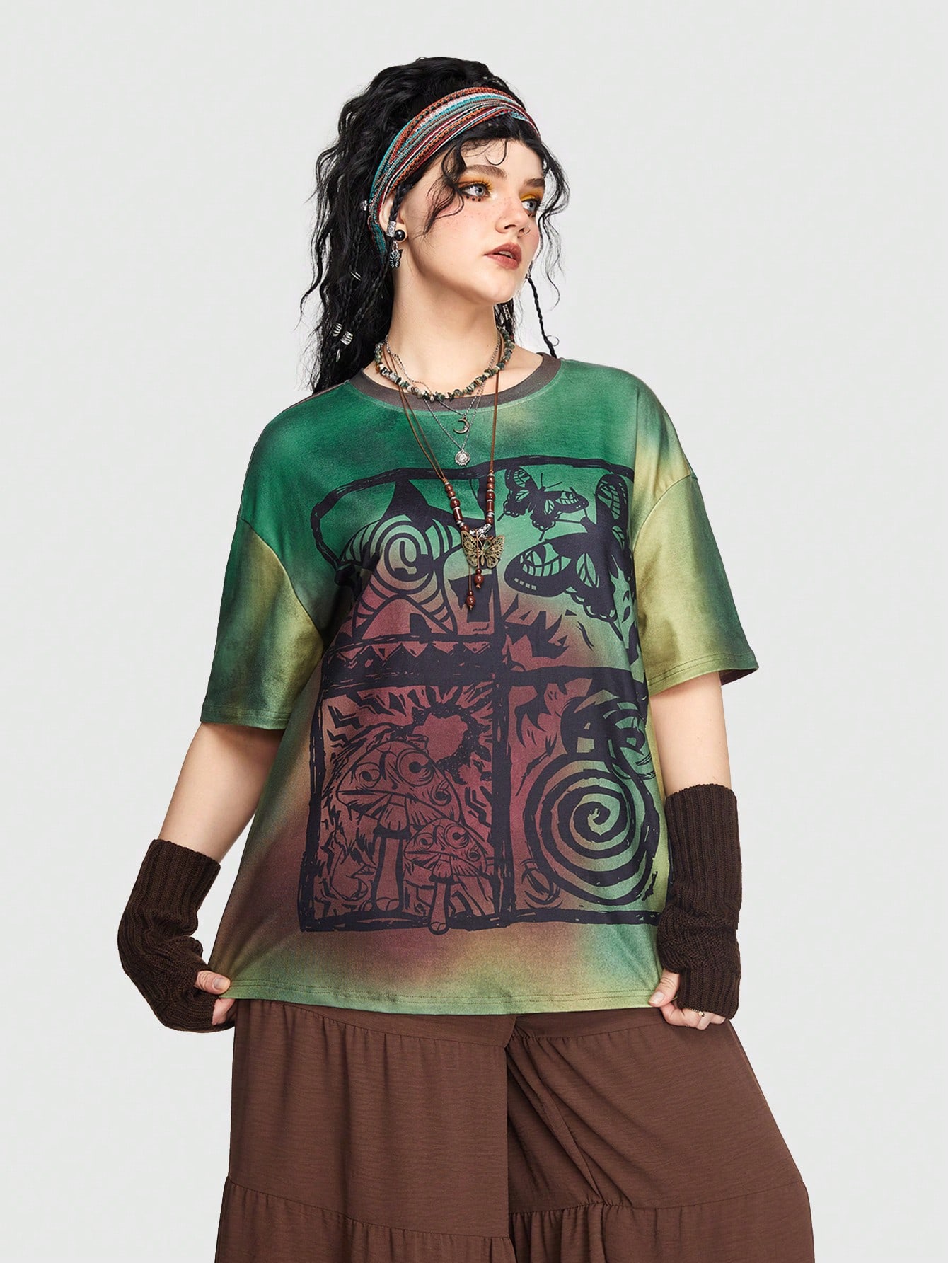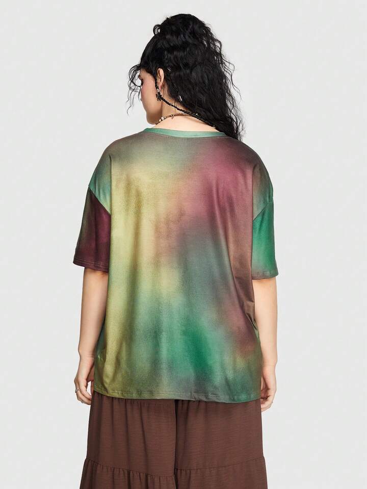 Hippie Talla grande Camiseta de hombros caídos de tie dye con estampado de letra
