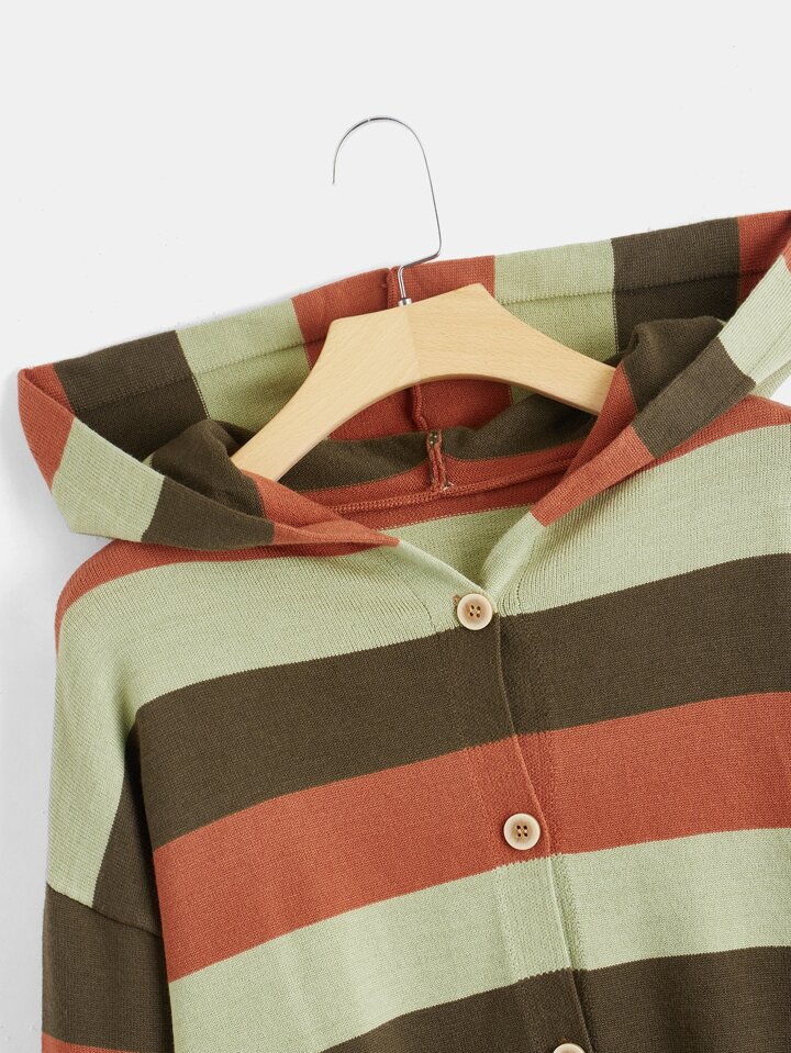 Hippie Cárdigan Con Capucha Frontal A Rayas Con Botones