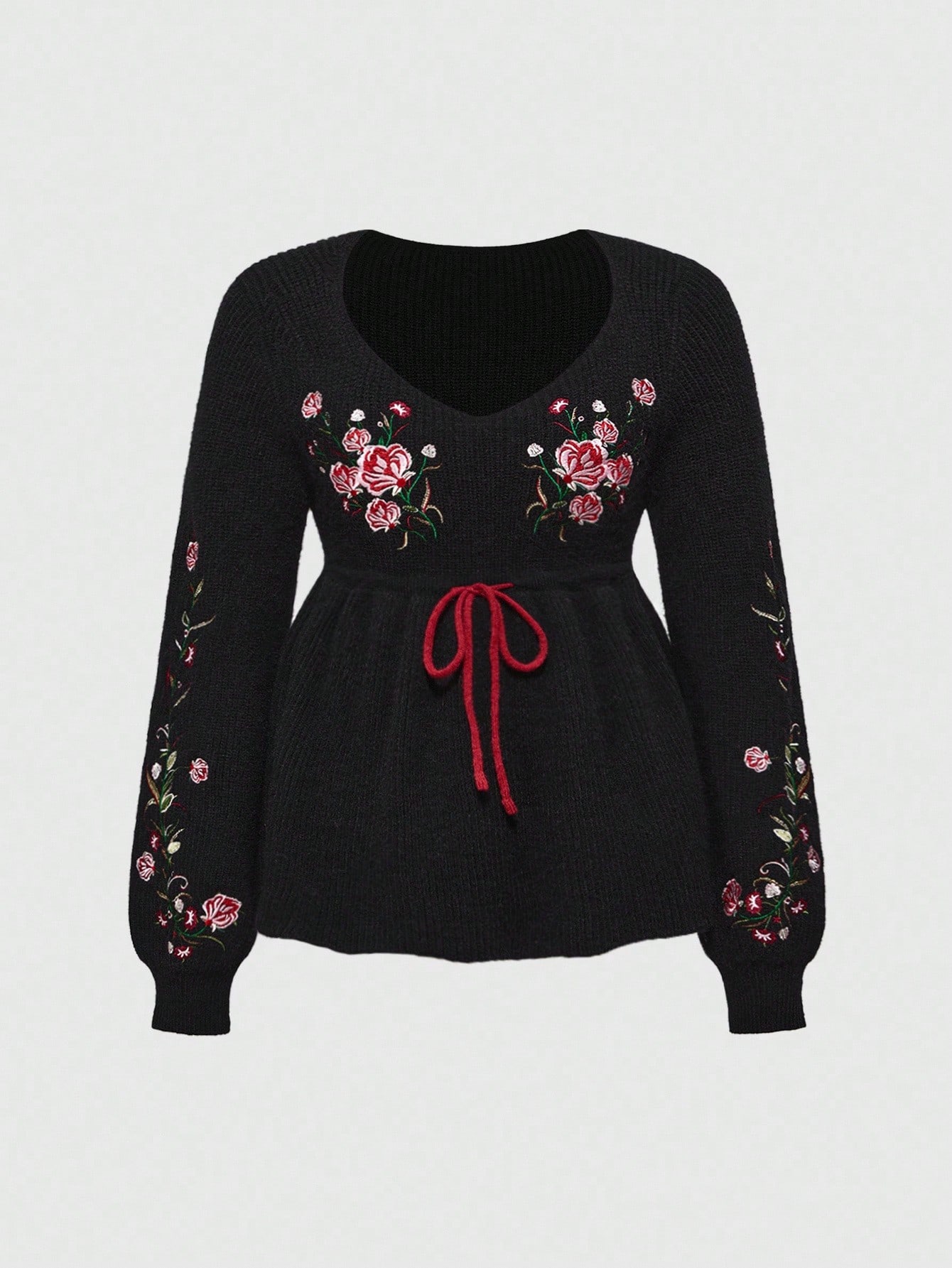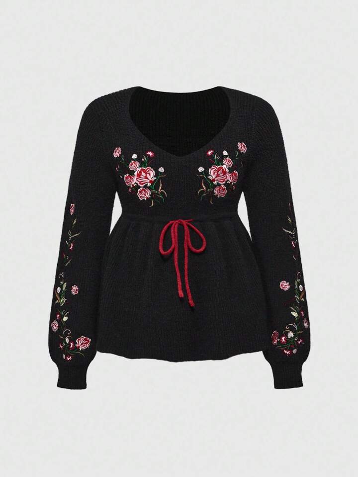 Suéter de mujer de estilo hippie con bordado floral, para otoño e invierno
