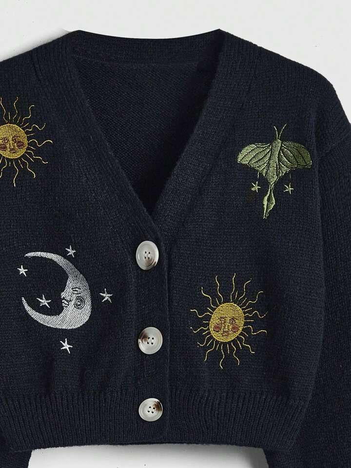 Hippie Cárdigan de manga linterna con estampado de sol y luna, camiseta de manga larga