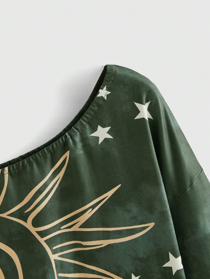 Hippie Camiseta sol & con estampado de estrella de tie dye de cuello asimétrico